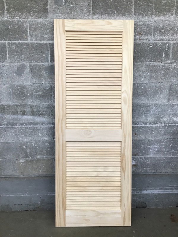 Undrilled, unfinished radiata pine louvered door. Item may have cosmetic damage.  Photo may be representational.
