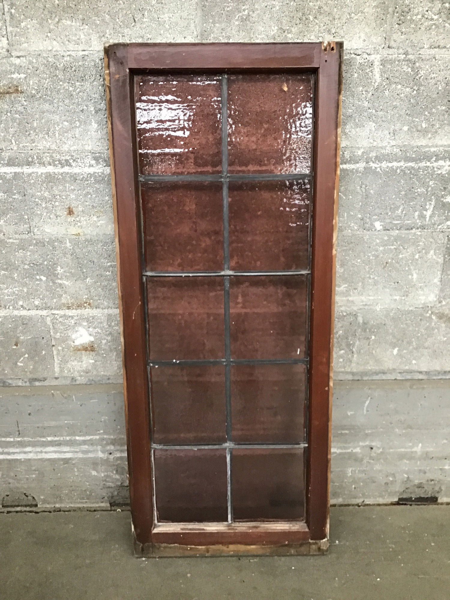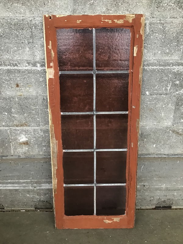 This window was delicately salvaged from a church-turned-mosque and brought here for you to enjoy! Features 10 true lead-divided panes, all are a deep rosy color with a couple different textures. Framed with vintage fir.