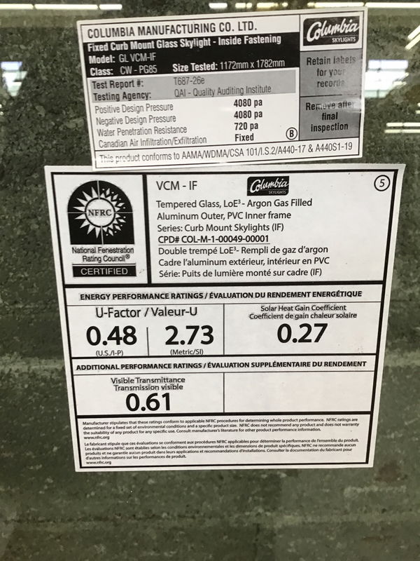 Like new, never installed aluminum skylight from Columbia Skylights.