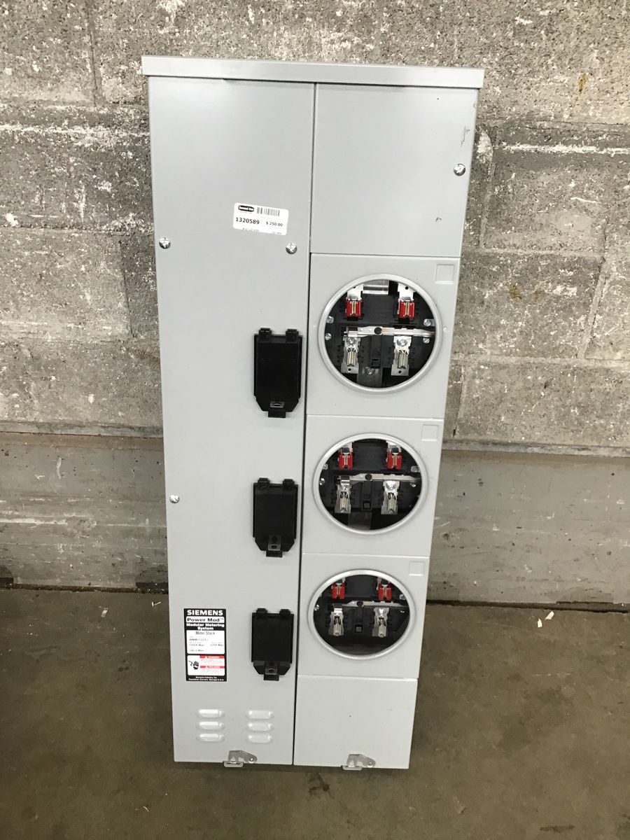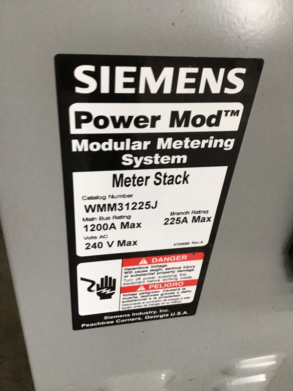 Siemens Power Mod™ Meter Stack, 6-Cutout 3-Wire Type WMM Extra Jaw Insulated, Underground Feed, 120/240 VAC, 1200 A Bus, 225 A Socket, 3 Meter Sockets, 1 ph, Ring Socket Cover Style, 5 Socket Jaws, QP/MP-T/QPH/HQP/MP-HT/MP-MT/QS/QSH/QSHH/HQS/HQSH Breaker, NEMA 1R Enclosure, Rail Mounting,