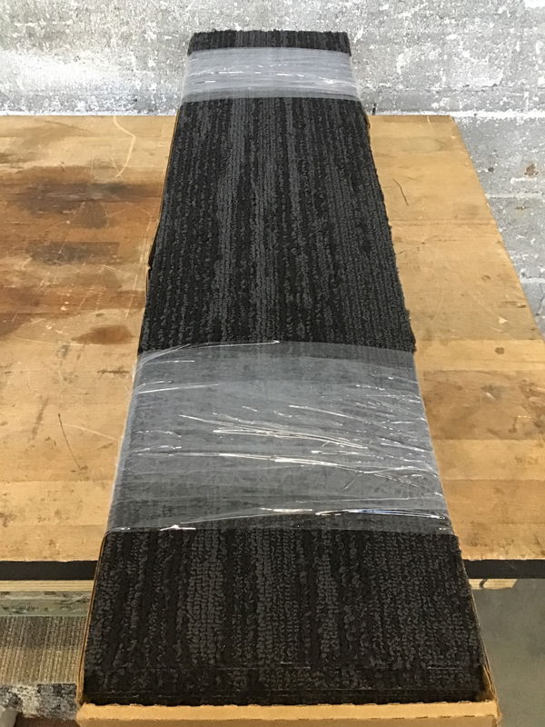 Carpet plank by Shaw. "Drift / Inspire" is a dark patter with varied tones from black to midnight blueish. Product info here. Sold by the box. 45 Sq ft per.