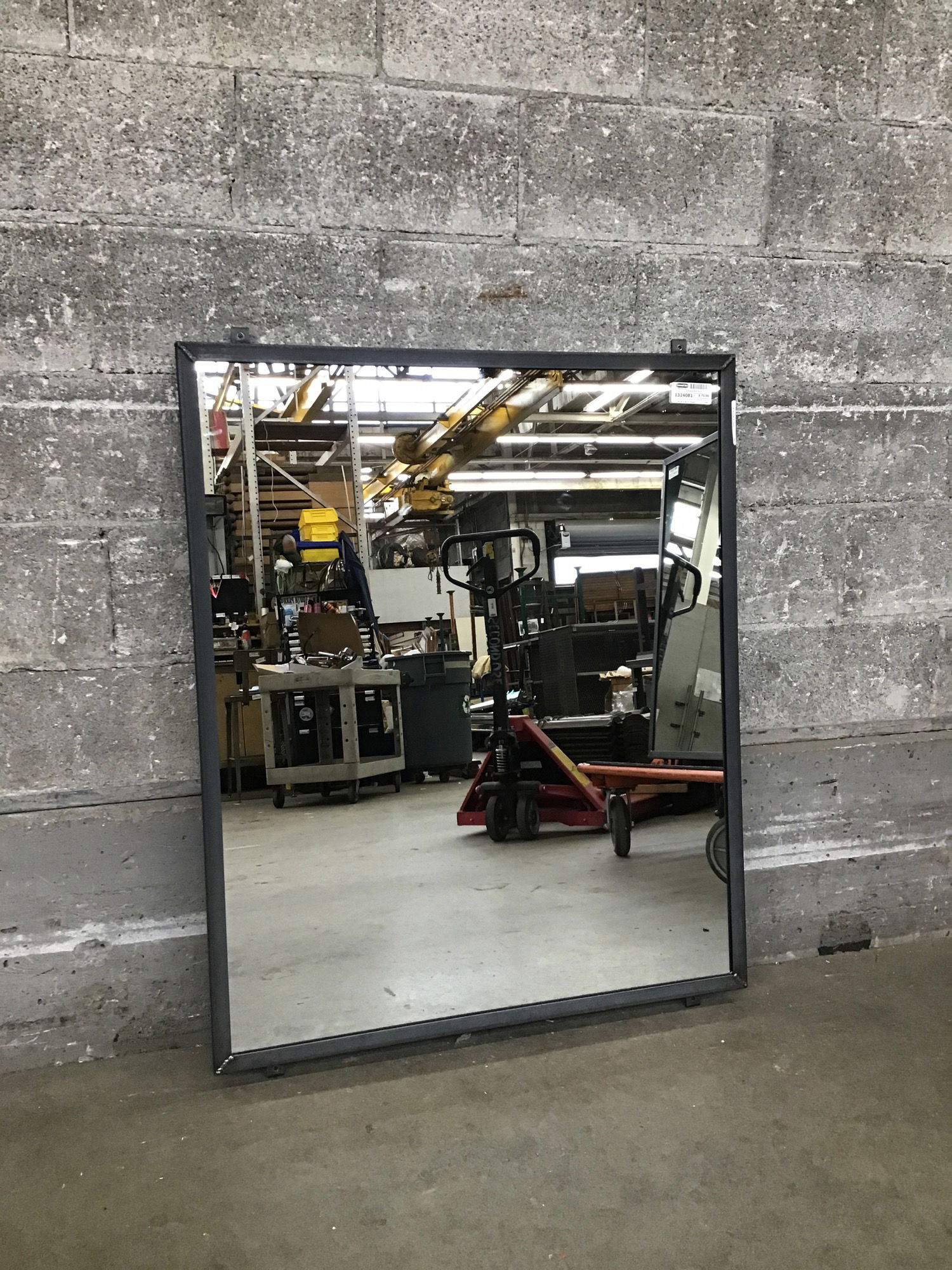 This is a mirror with a heavy duty welded steel frame. Perfect for adding an industrial flair to a space! Has 4 steel brackets for mounting. Photo may be representational.