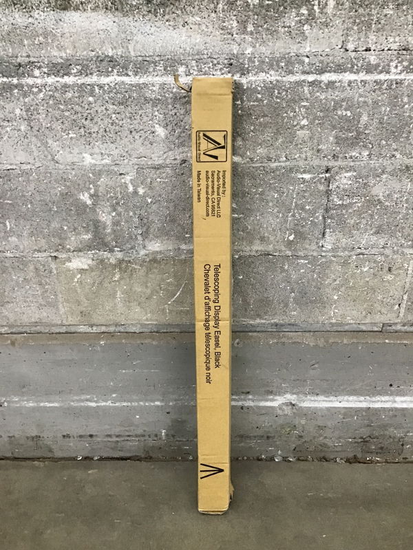 Telescoping black aluminum display easel that is both lightweight and easily adjustable. This came to us new in the box and retails online for around $35. Photo may be representational.