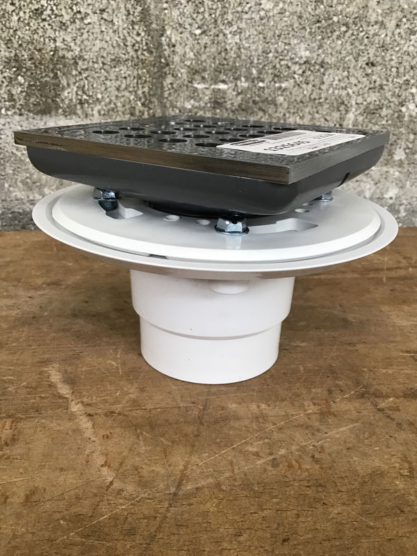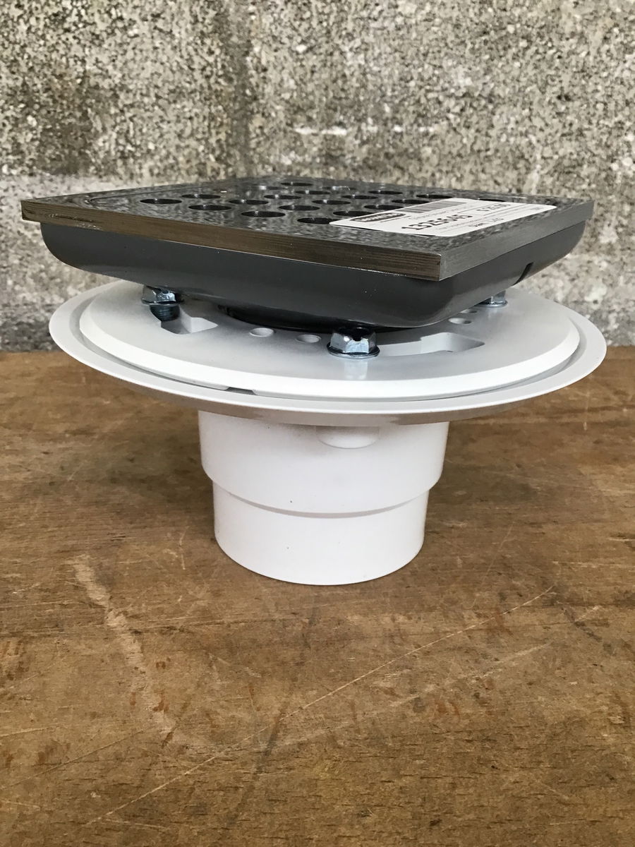 From Signature Hardware we have a square shower drain in a shiney chrome finish called 'Menlo'. This looks to retail new for $56.60.