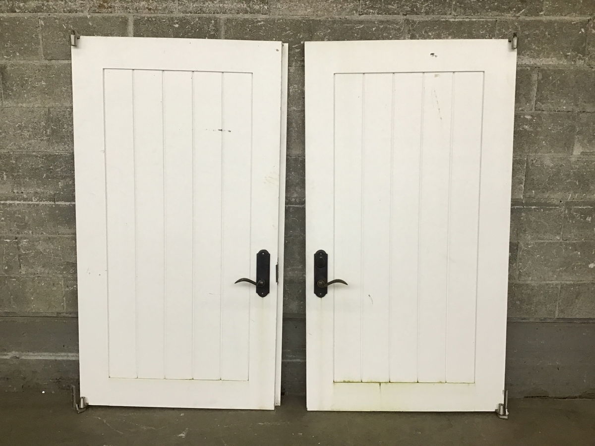 This nicely constructed garden gate features solid brass hardware and multiple locks. One of the hinges is missing a piece and you'll need to re-key the deadbolt, but this is otherwise in stellar shape and ready for reinstall! Width listed is the sum of both doors. One measures 36.75", the other 36.875".