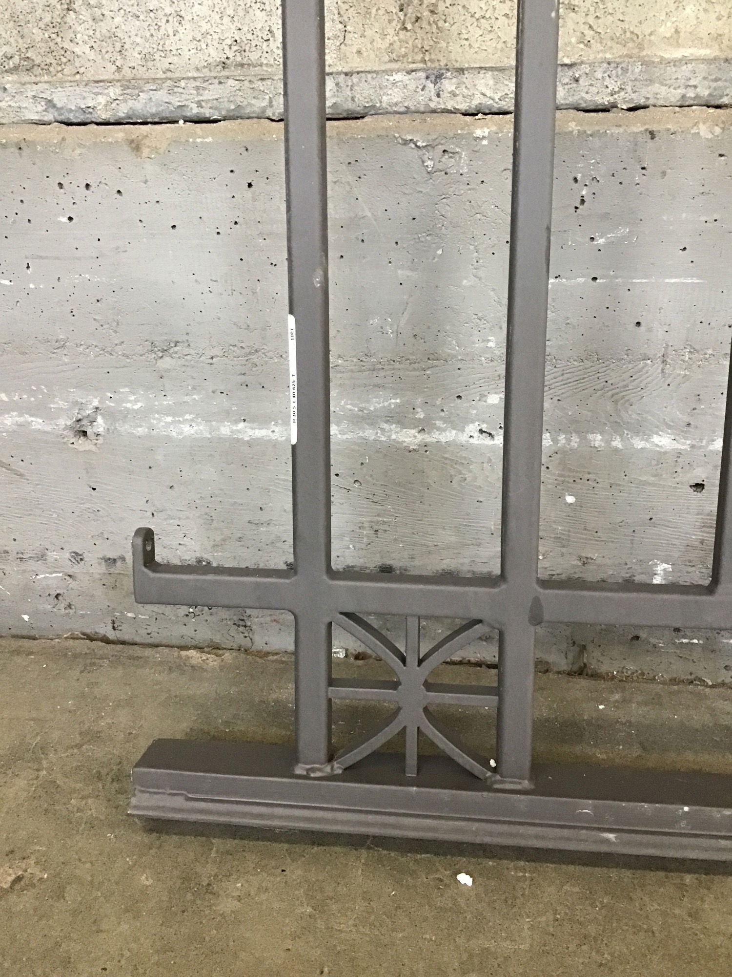Small but hearty piece of steel railing with a cool star-like detail in one corner. This has one wall mount "ear." Check out other items on this job for more matching railing!