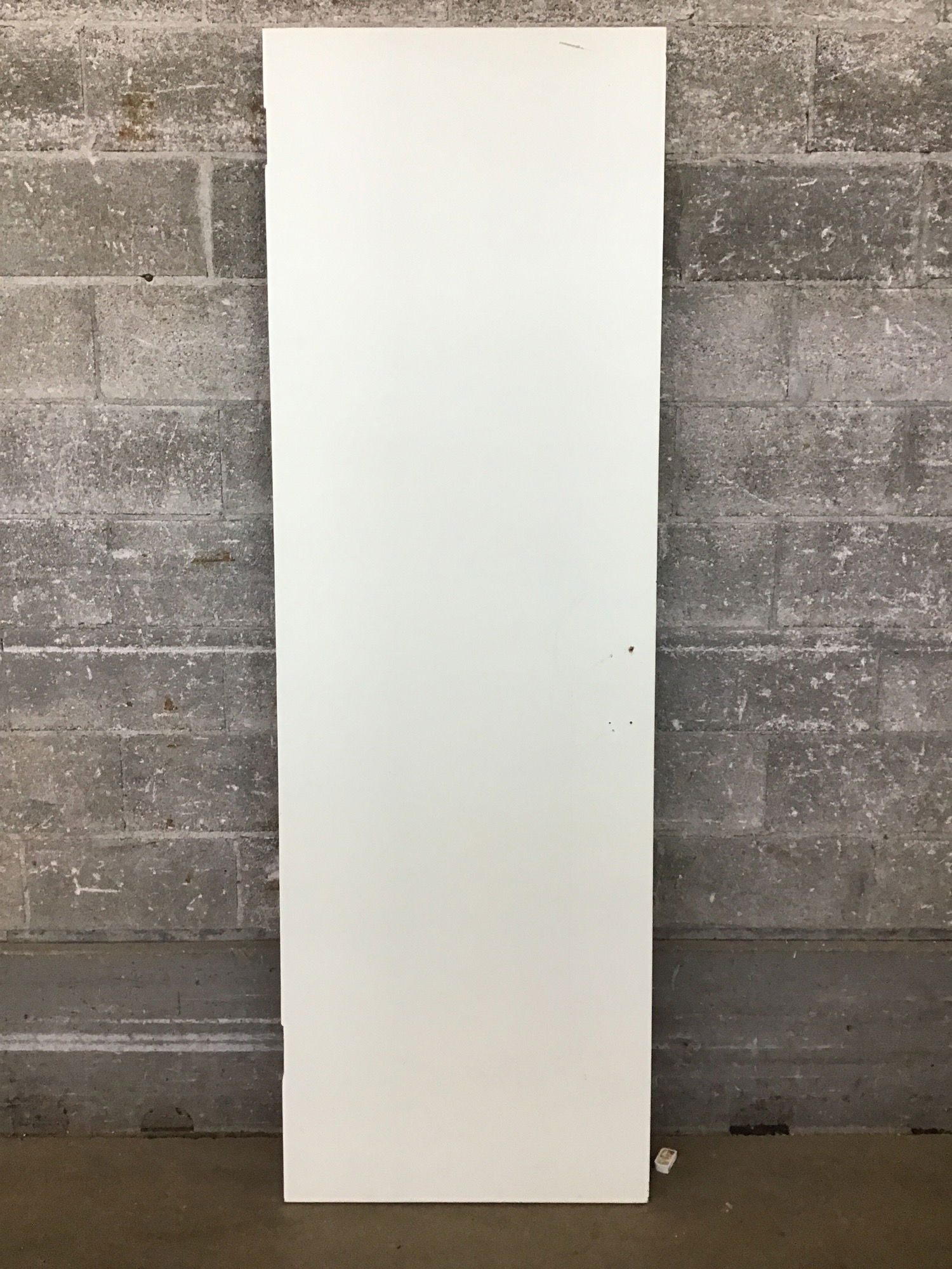Painted ?birch? flush face hollow core door in a not common 26" width. Was never drilled for a handle set, but does have two screw holes in each face from attaching a cabinet style pull.