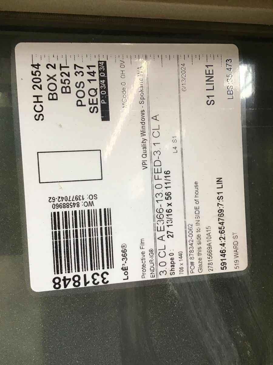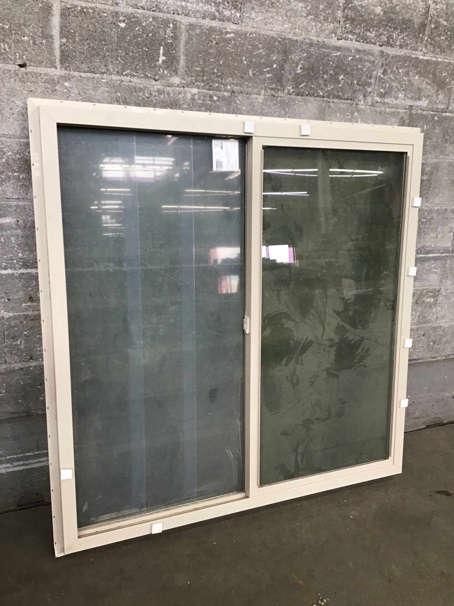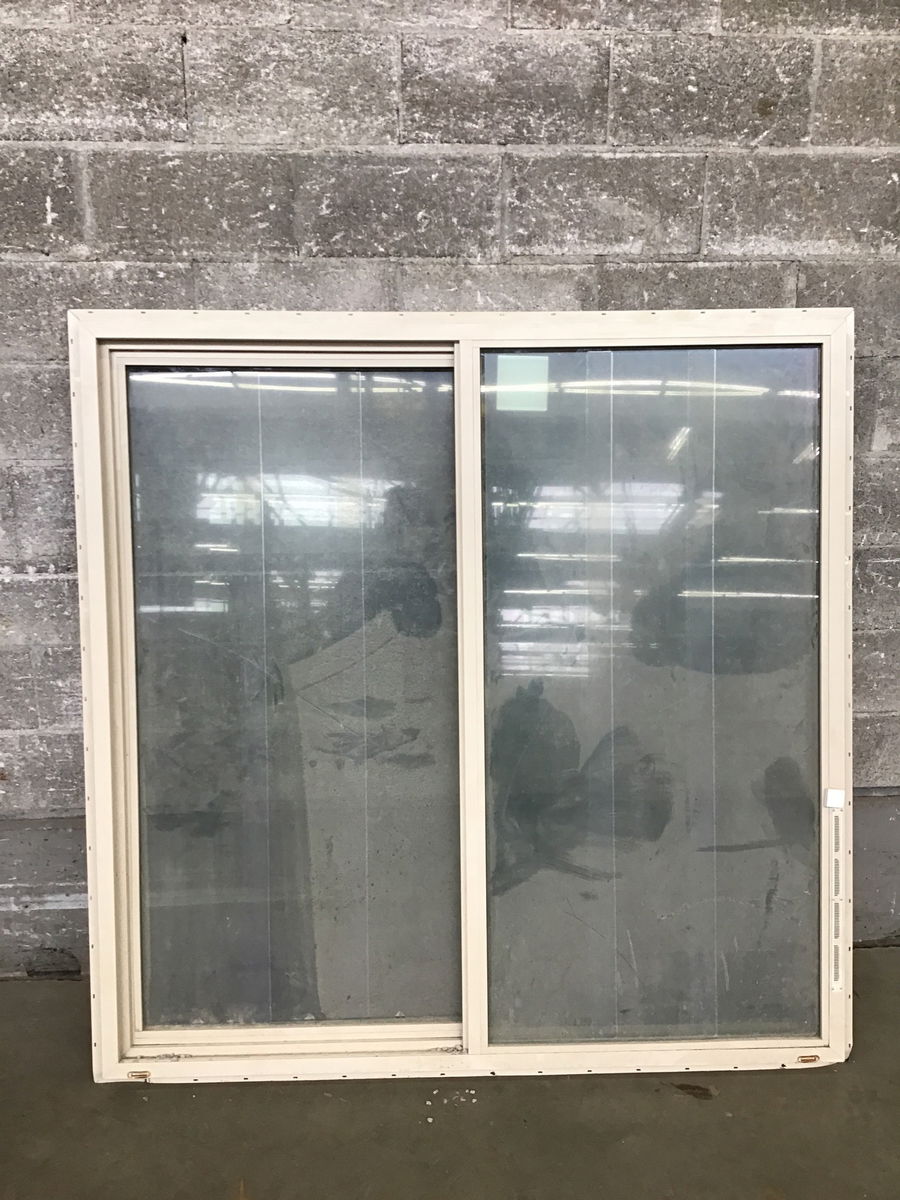 Ca. 2024 Beige vinyl sliding window made by VPI. Has not been installed.