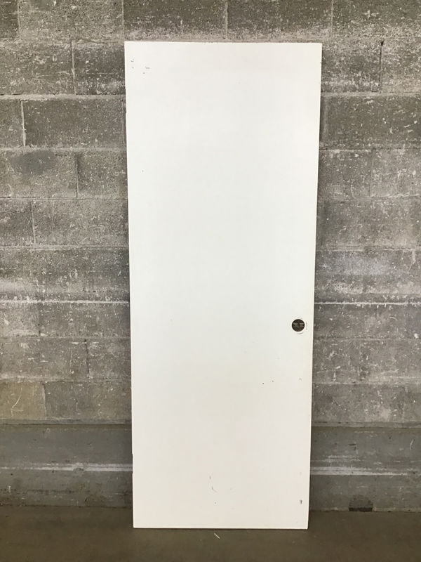 A hollow core door that's been painted white over what looks to be a mahogany veneer.