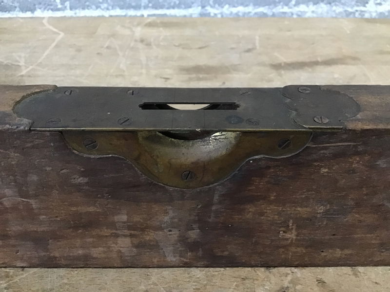 Based on the patent date of March 1878, this beautiful level could easily be nearing 150 years old! Both vials are intact and despite some wear reasonable to its age, it's in pretty great shape. It's finished with gorgeous brass hardware at the spirit vials and each end, and the wood is dense and richly toned - difficult to precisely ID through the aging, but as an educated guess we'd say likely mahogany or possibly rosewood. This level would be a real stunner after restoration, and it's at a pretty good starting point!