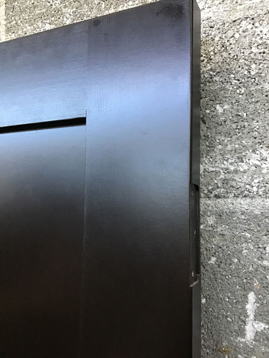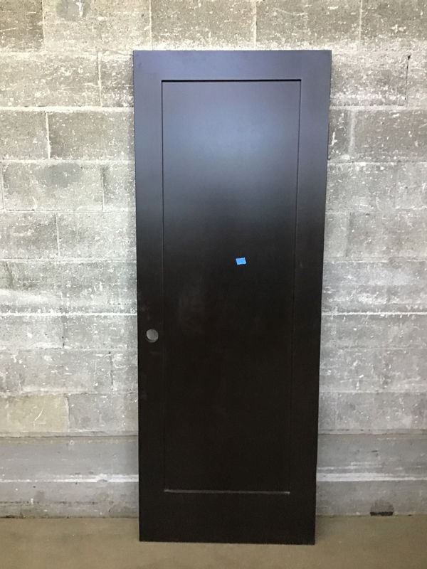 Dark (possibly black) stained, Shaker style one panel door.