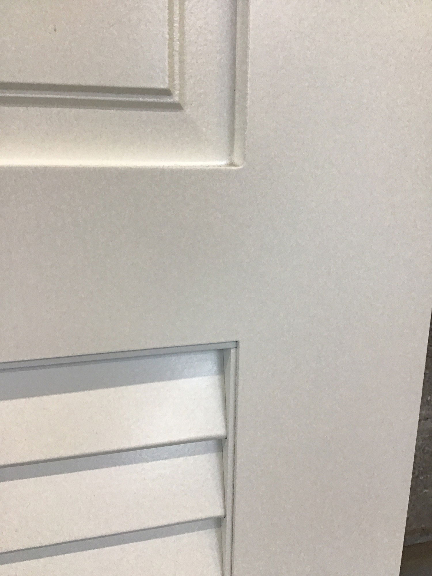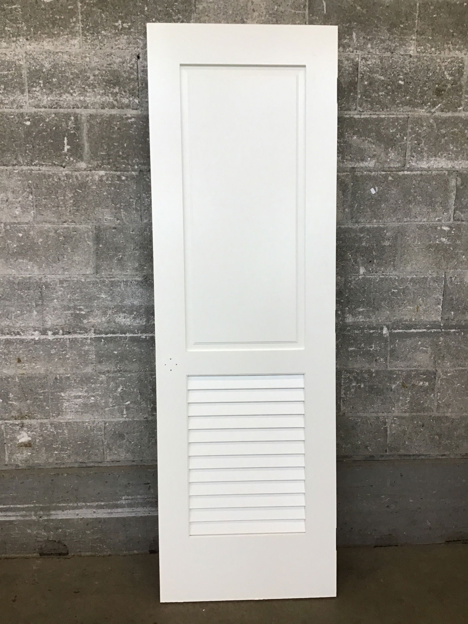 27" solid core door with a louver panel at the bottom. Clean coat of white paint. Used to have a dummy knob.