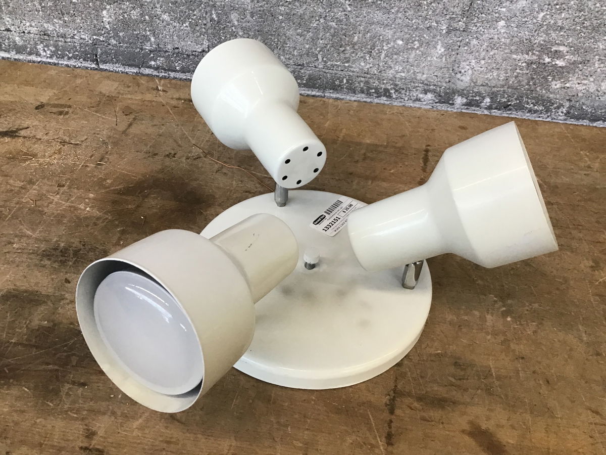 A little light fixture perfect for a hallway, garage, or den with a trio of bulbs which can be independently pointed and directed.