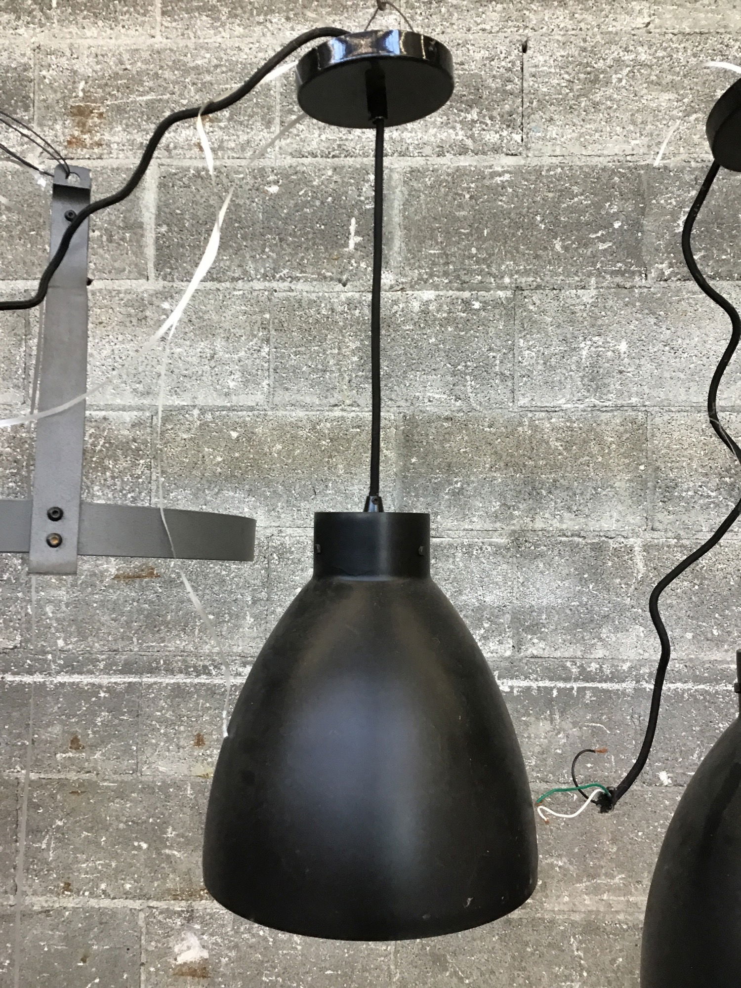 2013, West Elm hanging light pendant with a matte black industrial chic shade. In good condition.