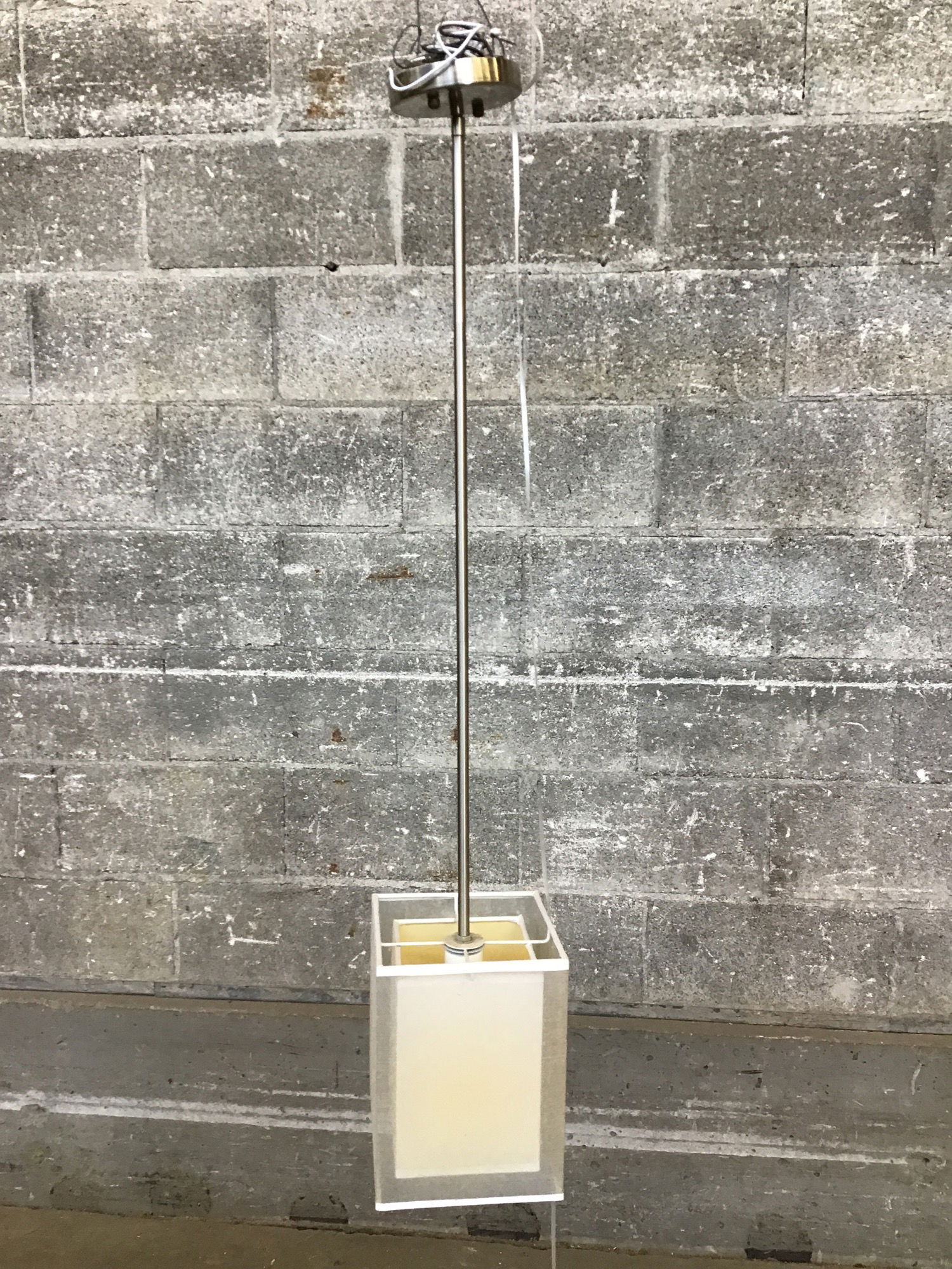 Dated but decent pendant light fixture with gauzy, multi-layered shade and adjustable stem.