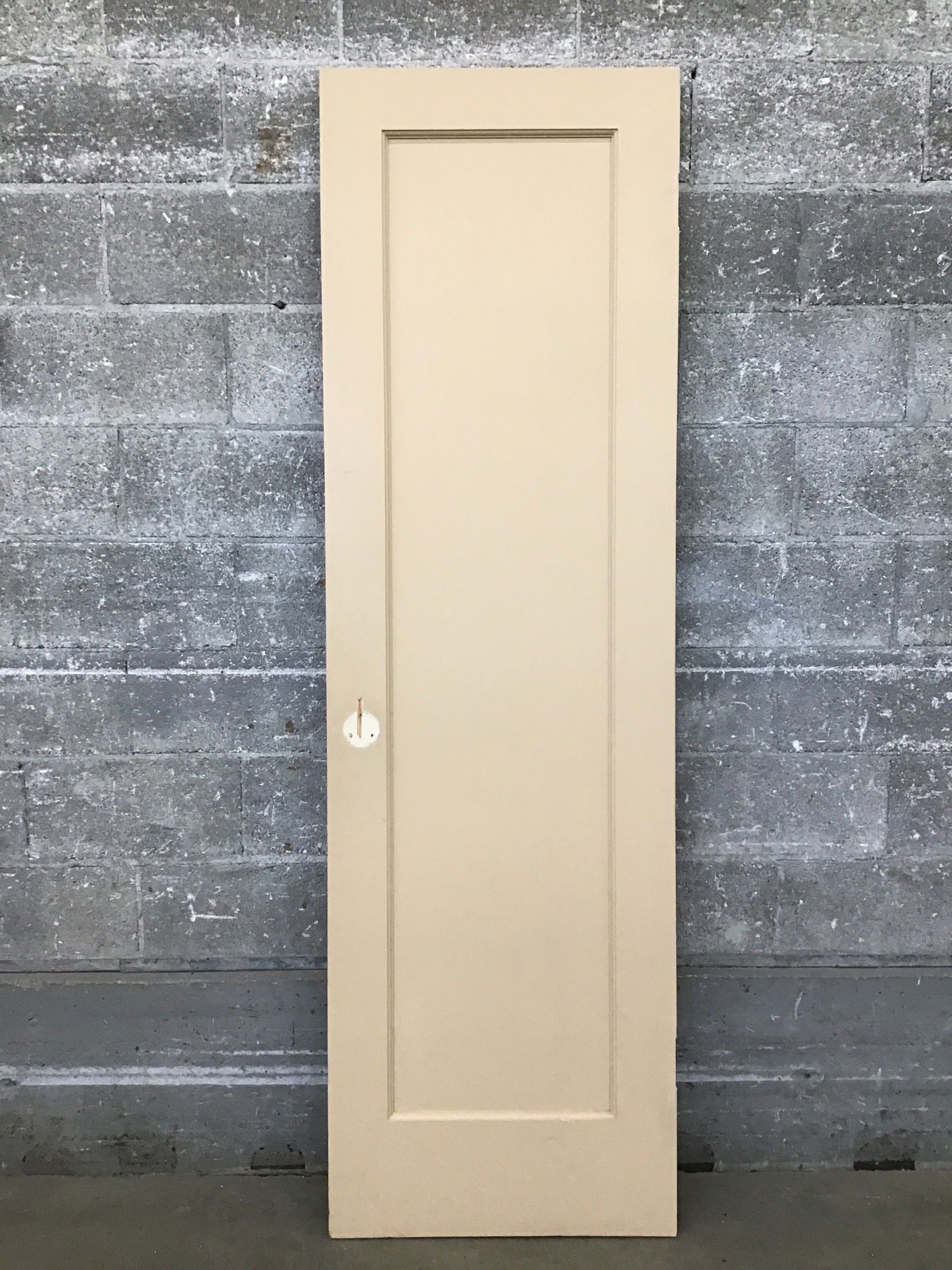 24" Single Panel Interior Door with a coat of tan paint. Undrilled, previously has a dummy knob.