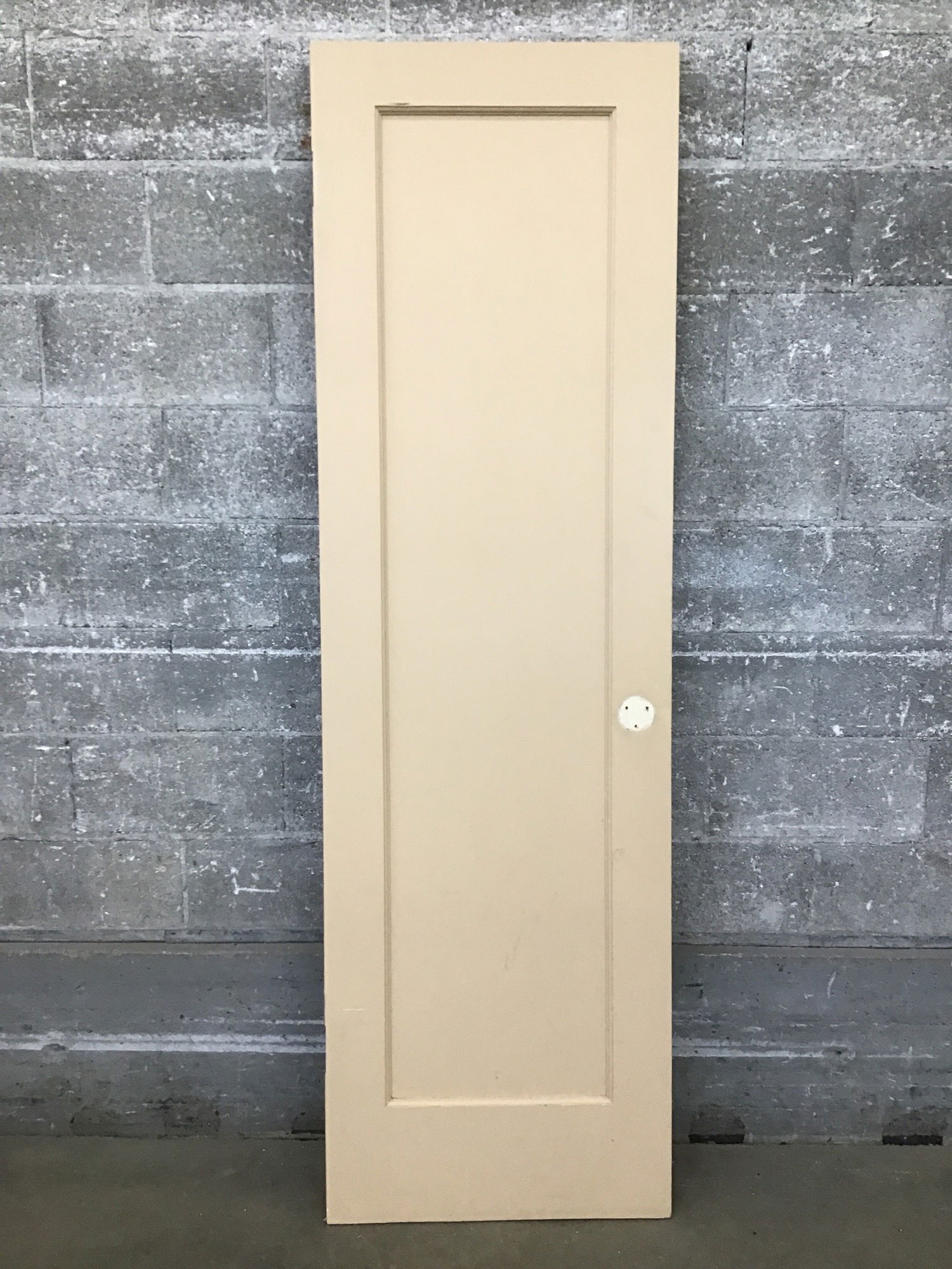 24" Single Panel Interior Door with a coat of tan paint. Undrilled, previously has a dummy knob.