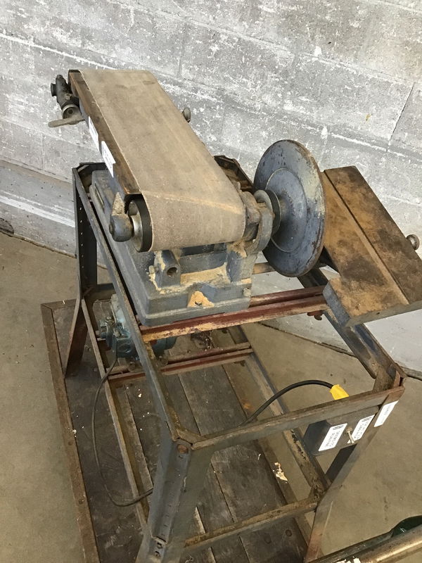 Craftsman 6" Belt & 9" Disc Sander with a 1/3 HP General Electric motor to drive it. Ran fine when I plugged an extension cord into the male connector on the switch. Dimensions include the base.