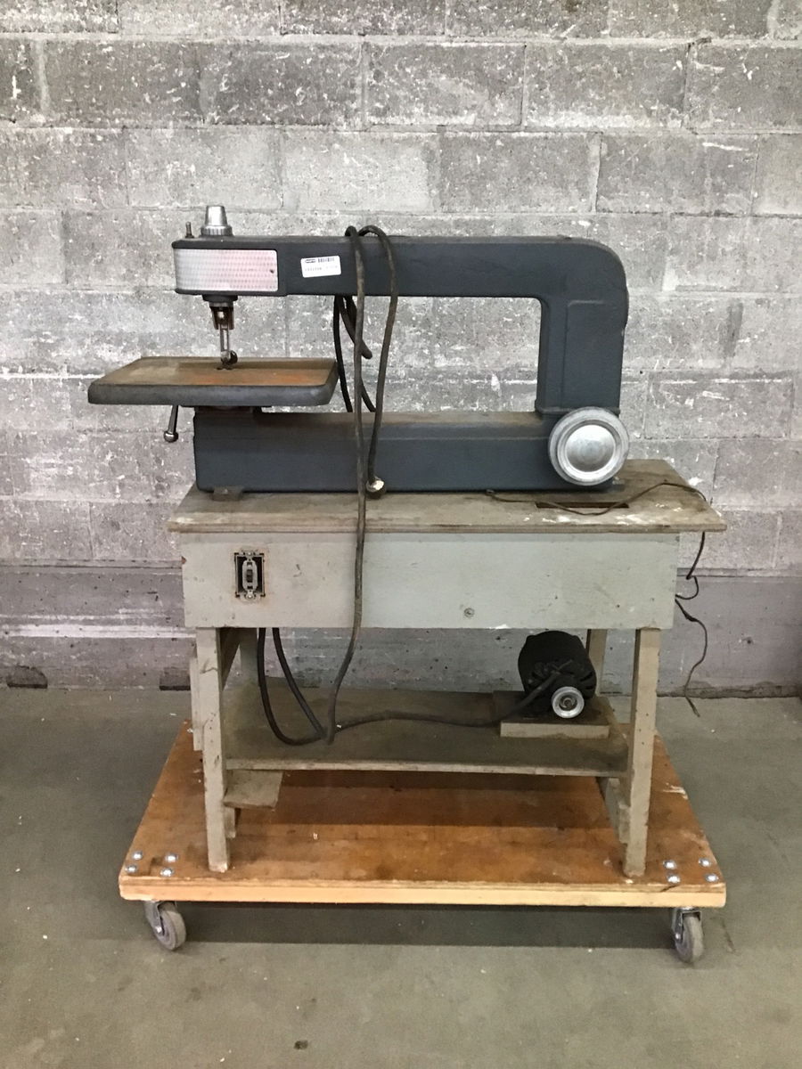 Vintage Craftsman scroll saw with 24" throat. The motor runs fine, but you'll need a new drive belt and some blades for the saw. Oh imagine the things you can cut with this big scroll saw! Dimensions are approximate and include the base.