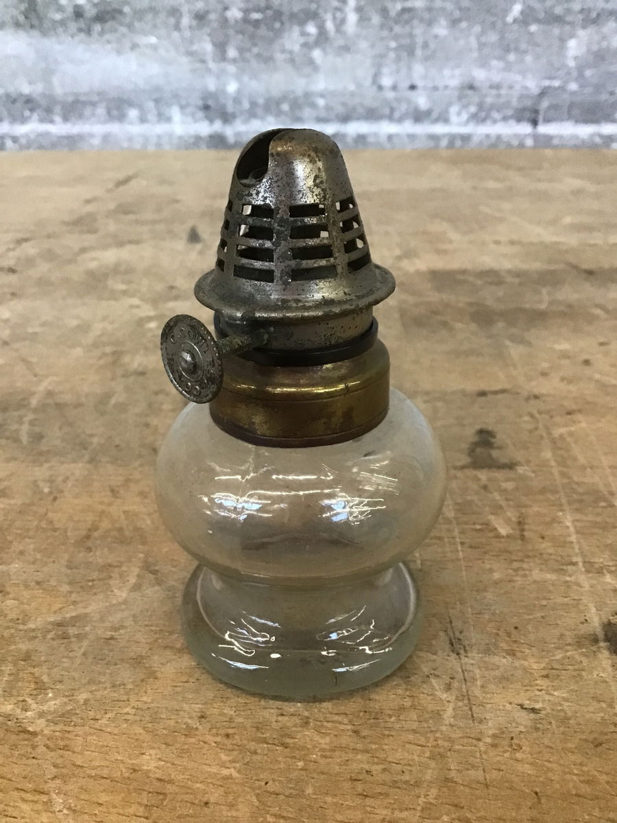 The teeny weeniest little kerosene lamp you ever did see! The burner was made by C. Cowles & Co., and I believe it's a chimney-less model. The whole lamp stands at just 4in tall and about 2in wide. So precious!