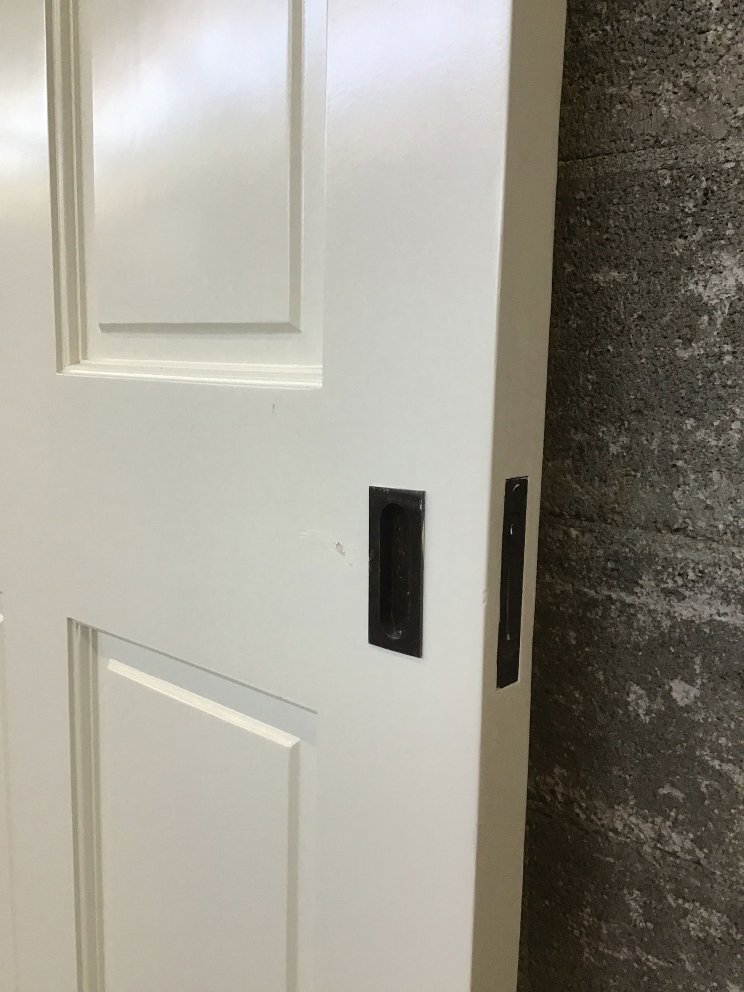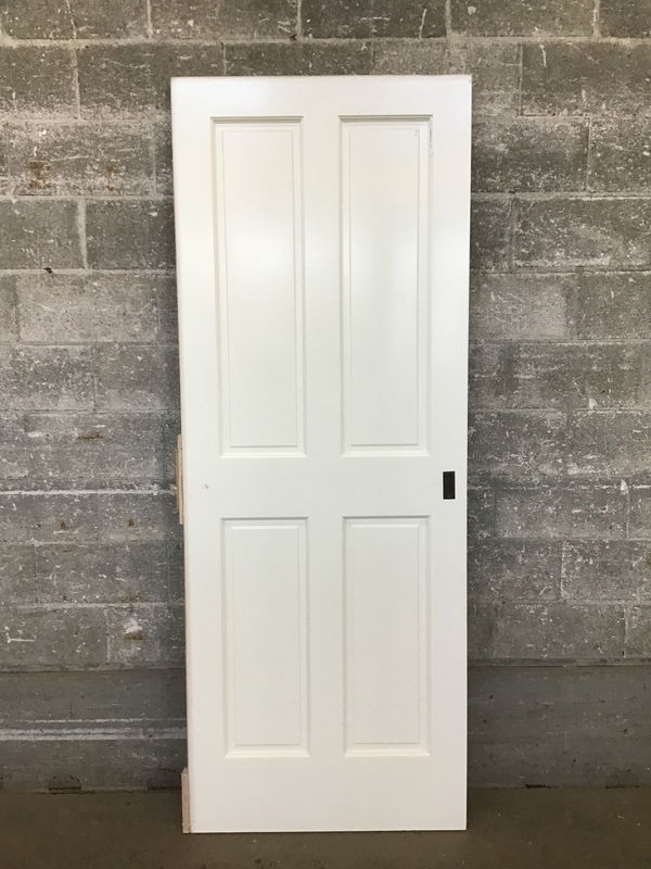 32" Four Panel Pocket Door with brass inset pull and nice clean coat of white paint.