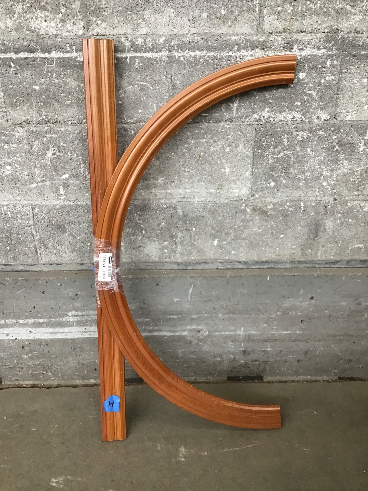 Beautiful custom arched fir casement window with at least some of its original trim package. So far, in spite of being probably a thirty year old window its seals are good and it is in good structural condition overall. This window would be a nice addition to a custom backyard shack. Photo may be representational.
