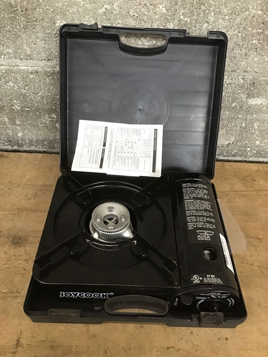 Joycook brand "Portable Gas Cooker" in carrying case with paperwork.