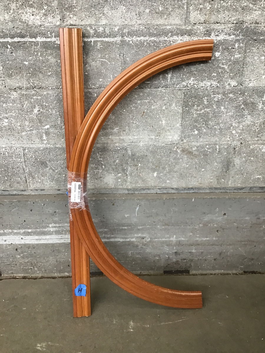 Beautiful custom arched fir casement window with at least some of its original trim package. So far, in spite of being probably a thirty year old window its seals are good and it is in good structural condition overall. This window would be a nice addition to a custom backyard shack. Photo may be representational.