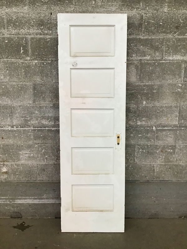 Bargain basement five panel fir door that is cosmetically challenged, missing original mortise and has been cut down.