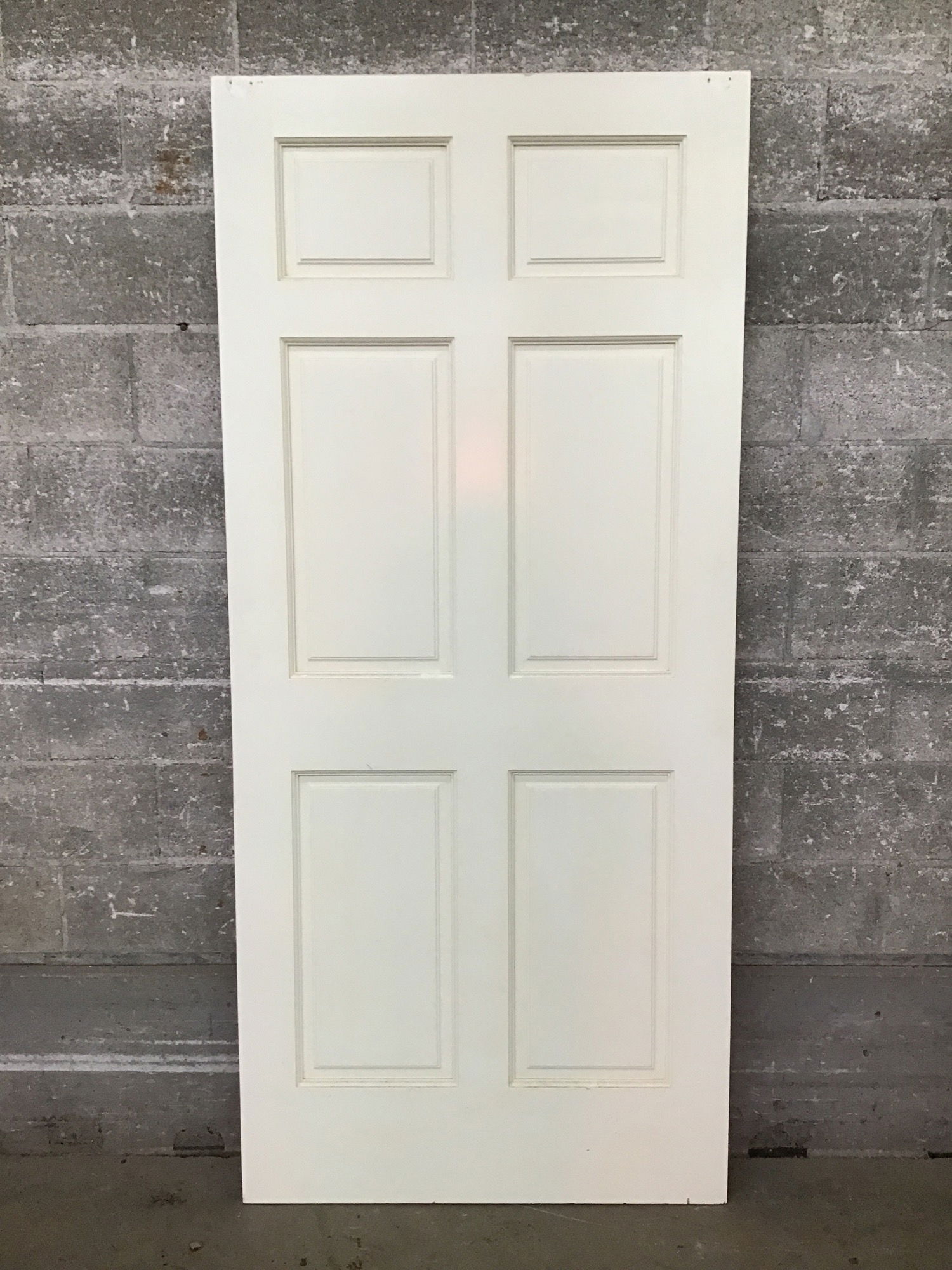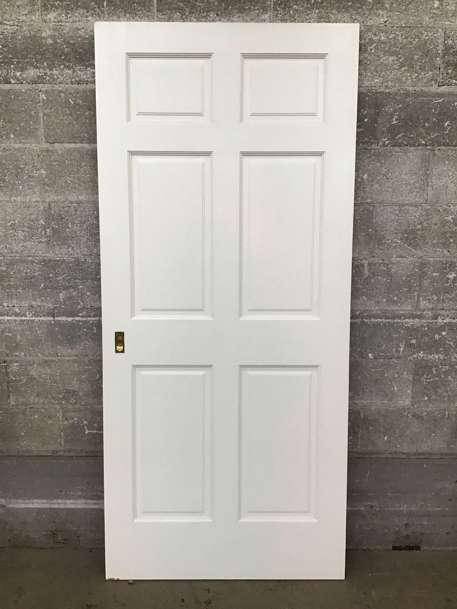 Nice looking raised six panel door with inset bypass pulls. It has some minor cosmetic scuffs and scratches.