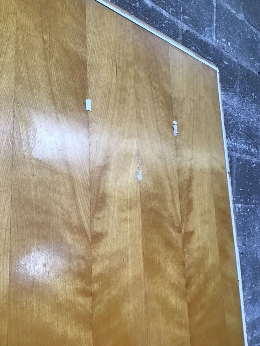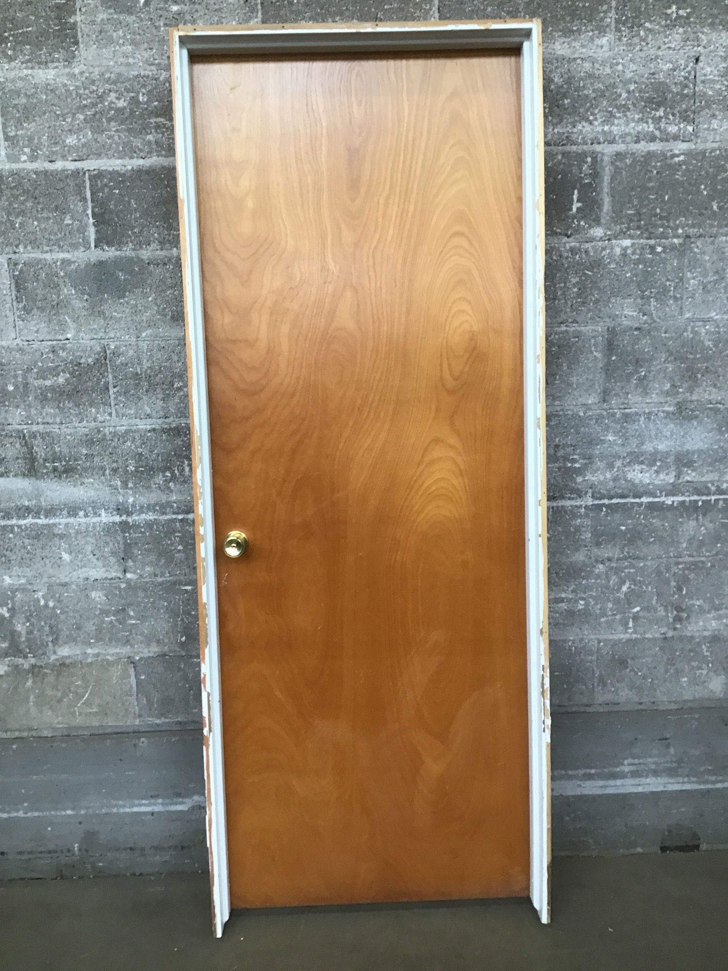 30" MCM Birch Hollow Core Door whose birch skin is in amazing condition! Has chrome knobs. There is a little schmutz on one side from some command hooks I removed. A little goo gone or alcohol will get the job done.