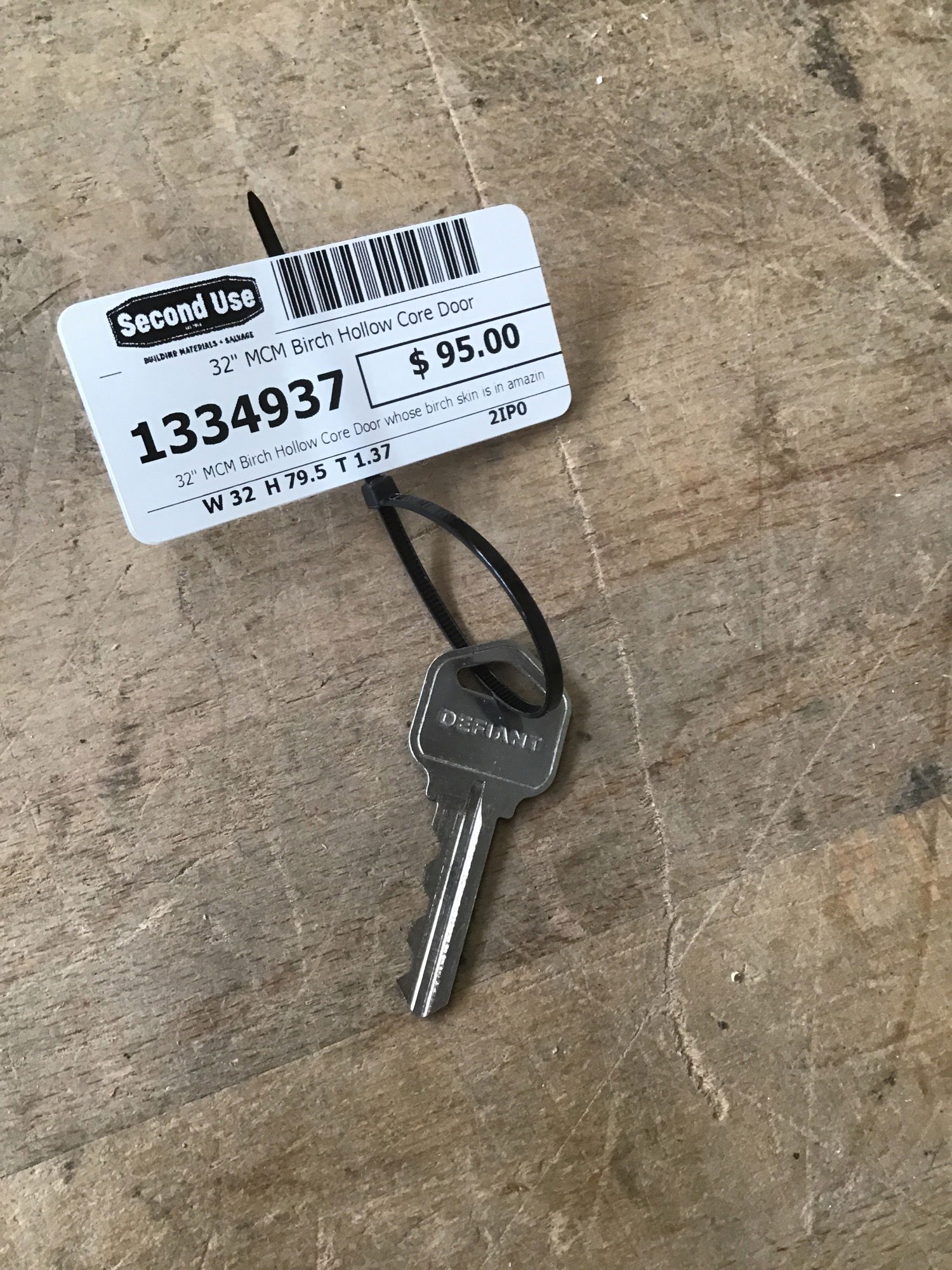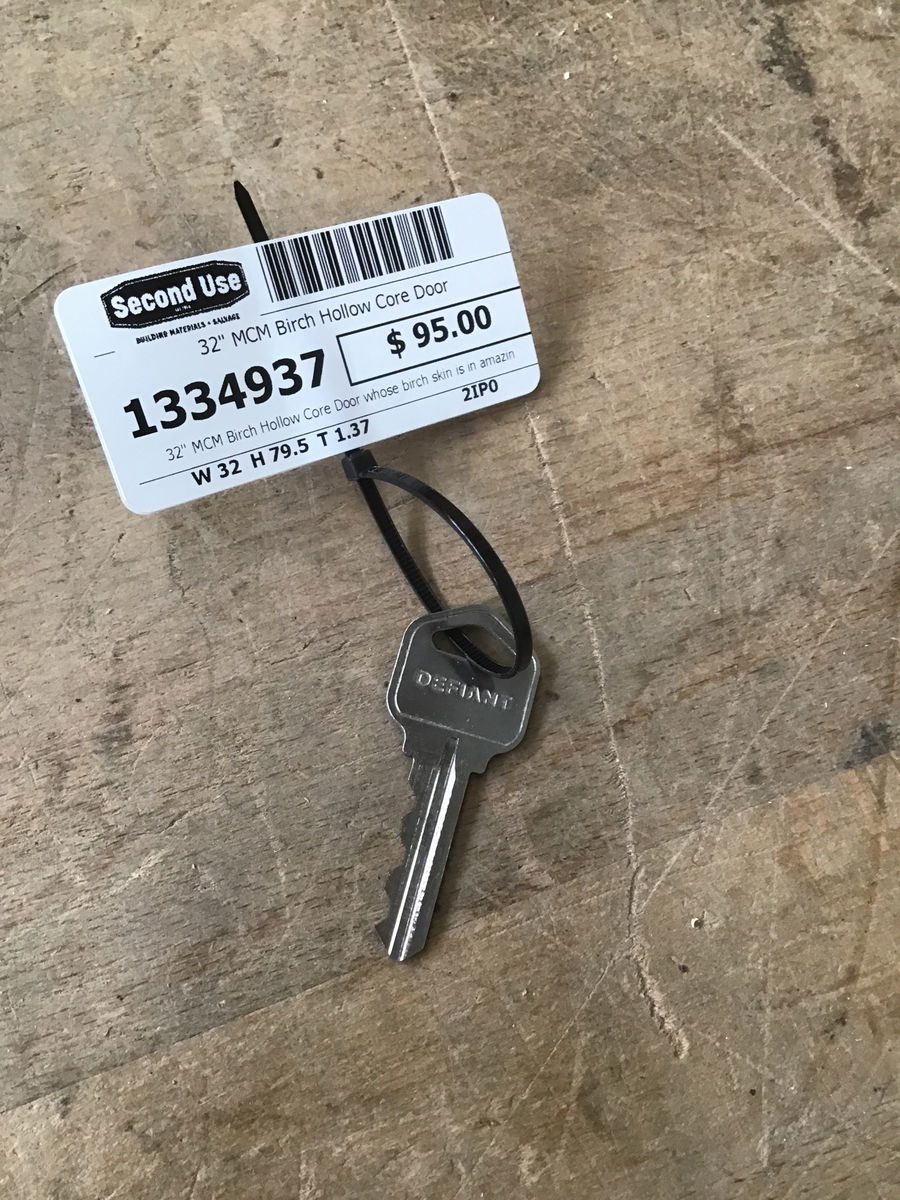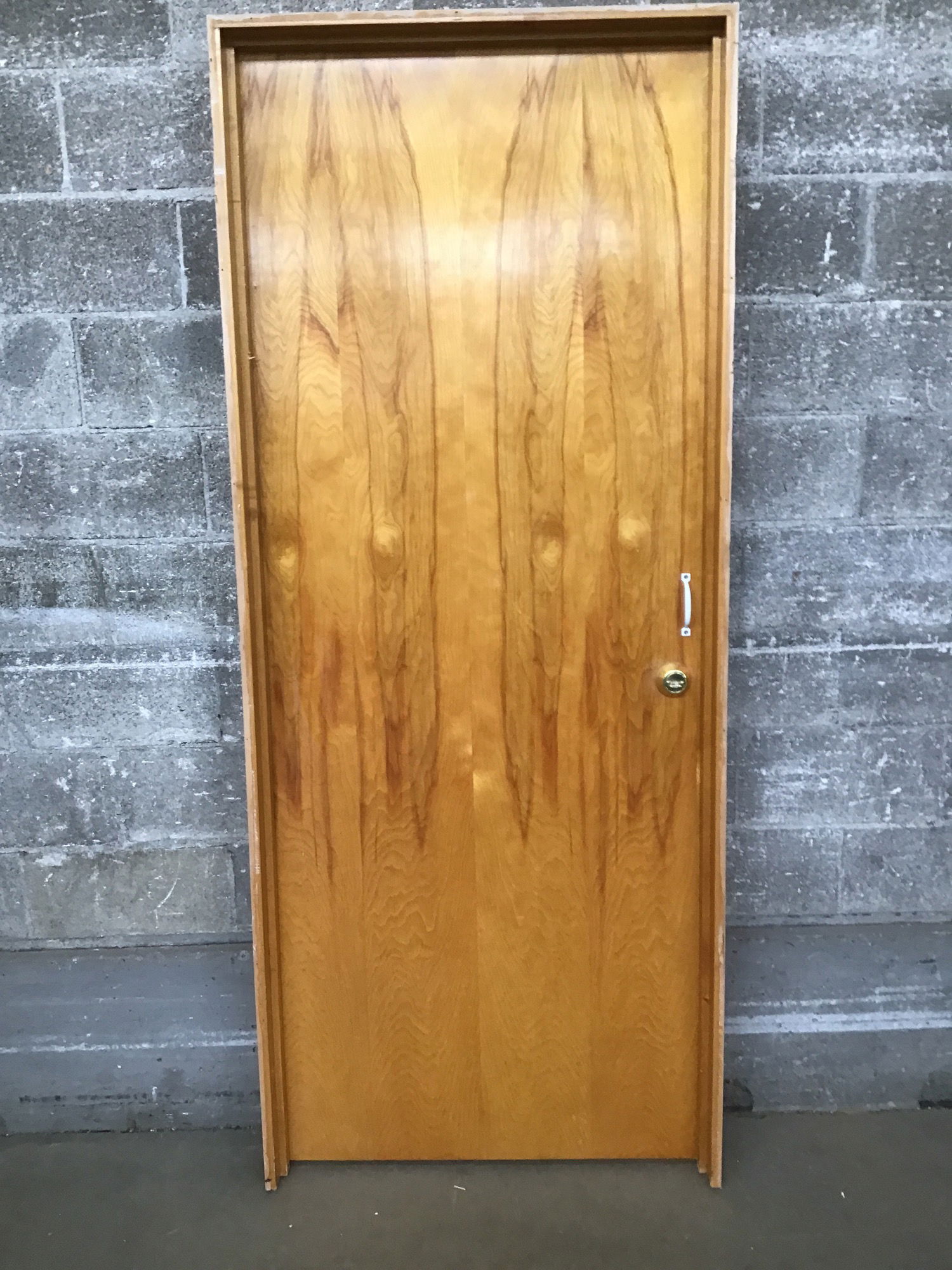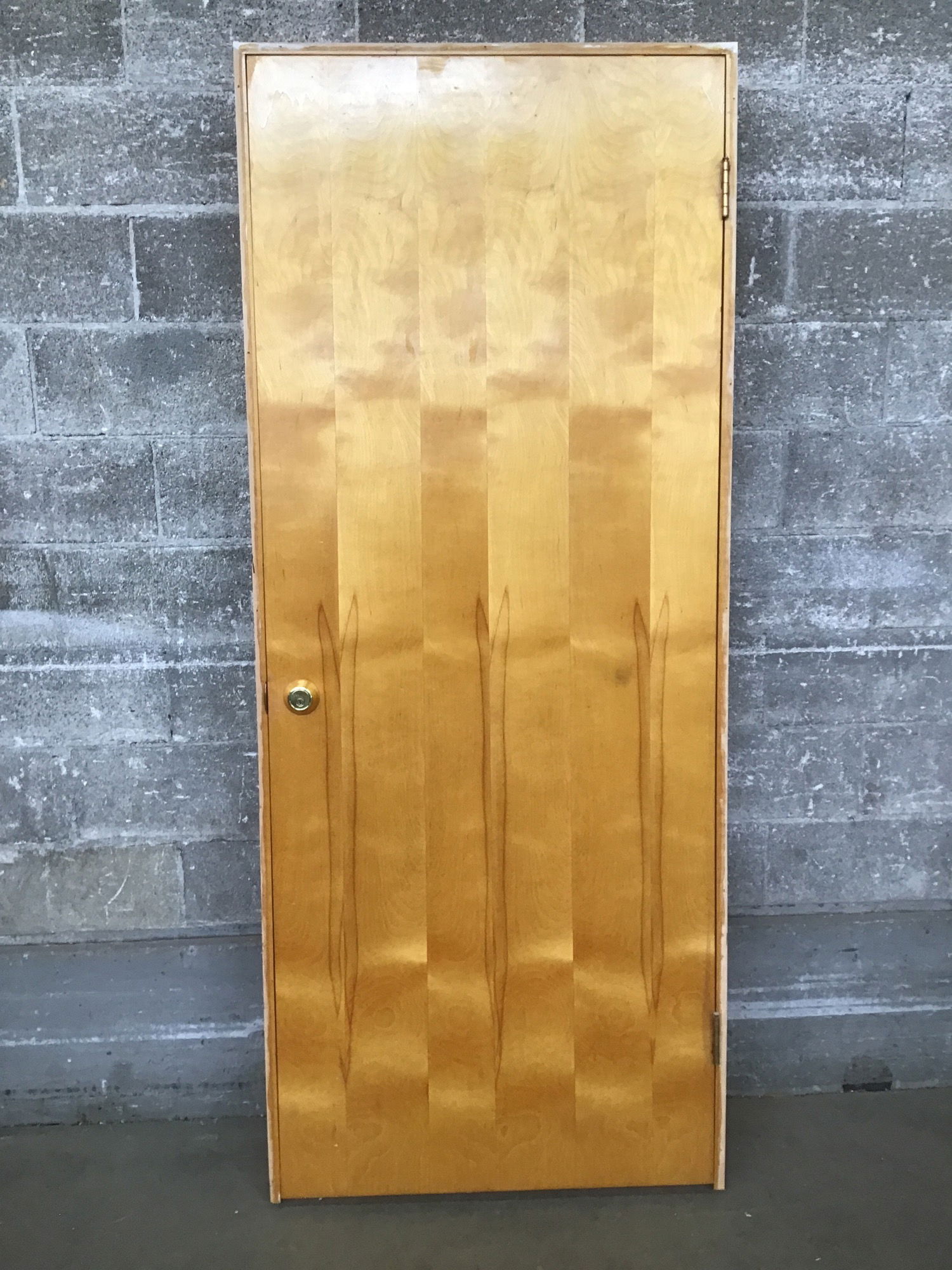 32" MCM Birch Hollow Core Door whose birch skin is in amazing condition! Has brass knobs.