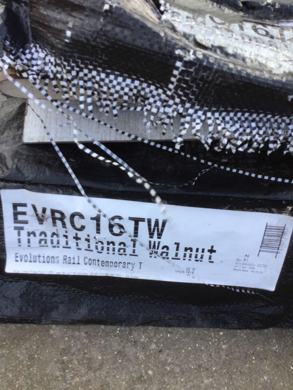 16' Length of Evolutions Rail Contemporary "Traditional Walnut" composite decking rail cap that could potentially be used as decking if you don't mind the slight "ovalness" to it. Item may have cosmetic damage. Photo may be representational. This is a bulk item. No holds please. Sold by the 16' long piece.