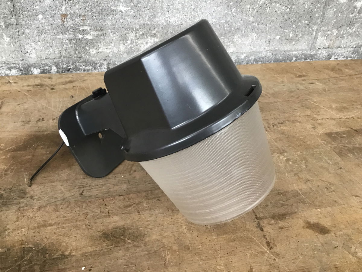 Outdoor commercial-looking wall sconce with a plastic shade and heavy-duty fitter. Can also be post- or pole-mounted.