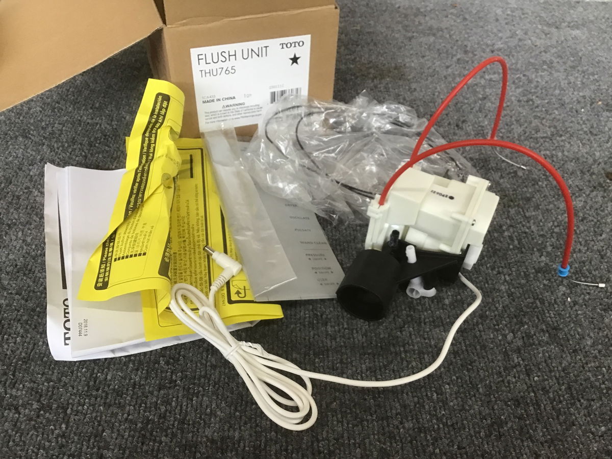 New in-box flush unit for a Toto dual flush washlet. Includes auto flush part with control buttons for the top of the tank. Comes with install instructions and hardware necessary. See these retailing here for $150 new!