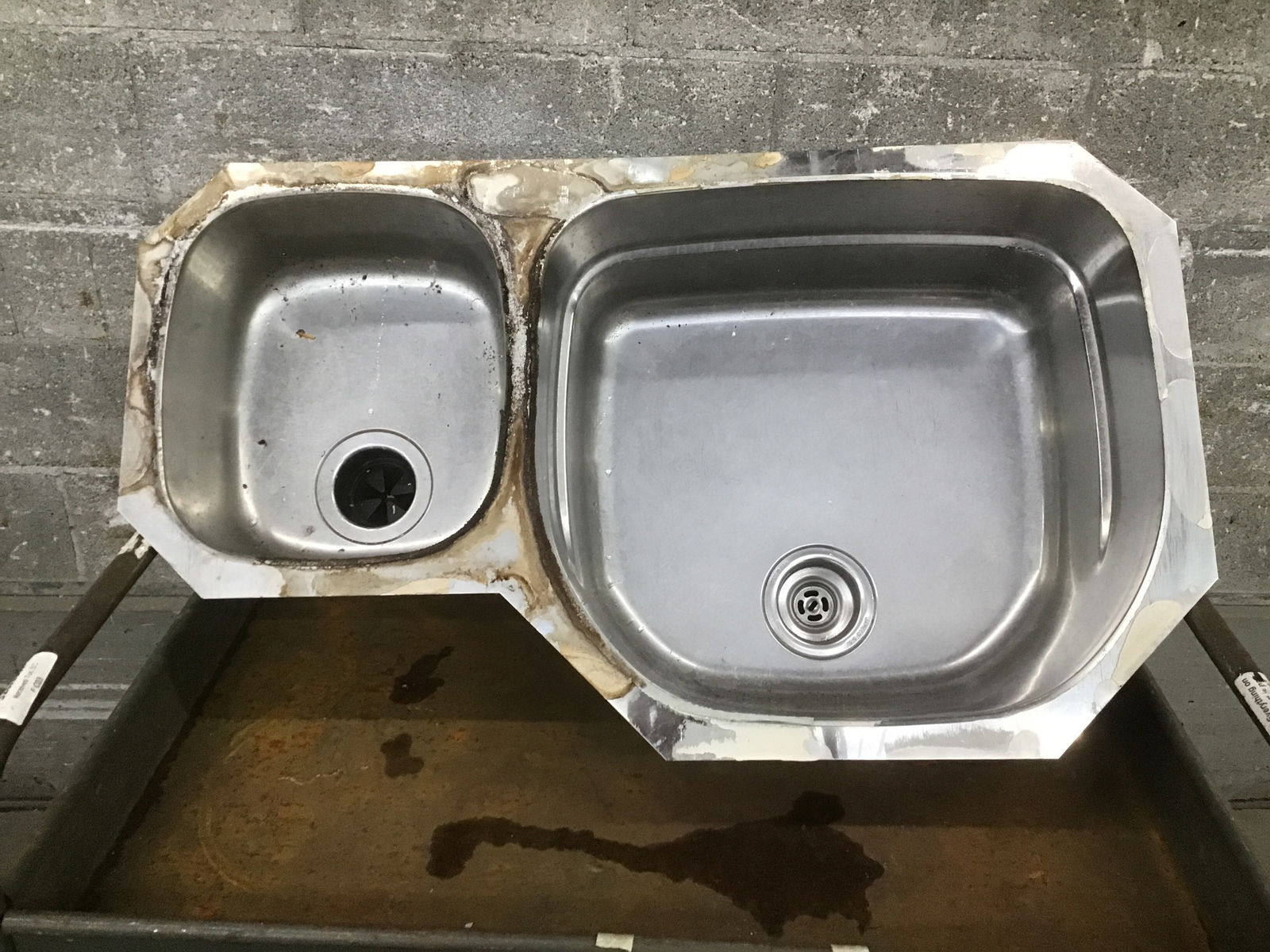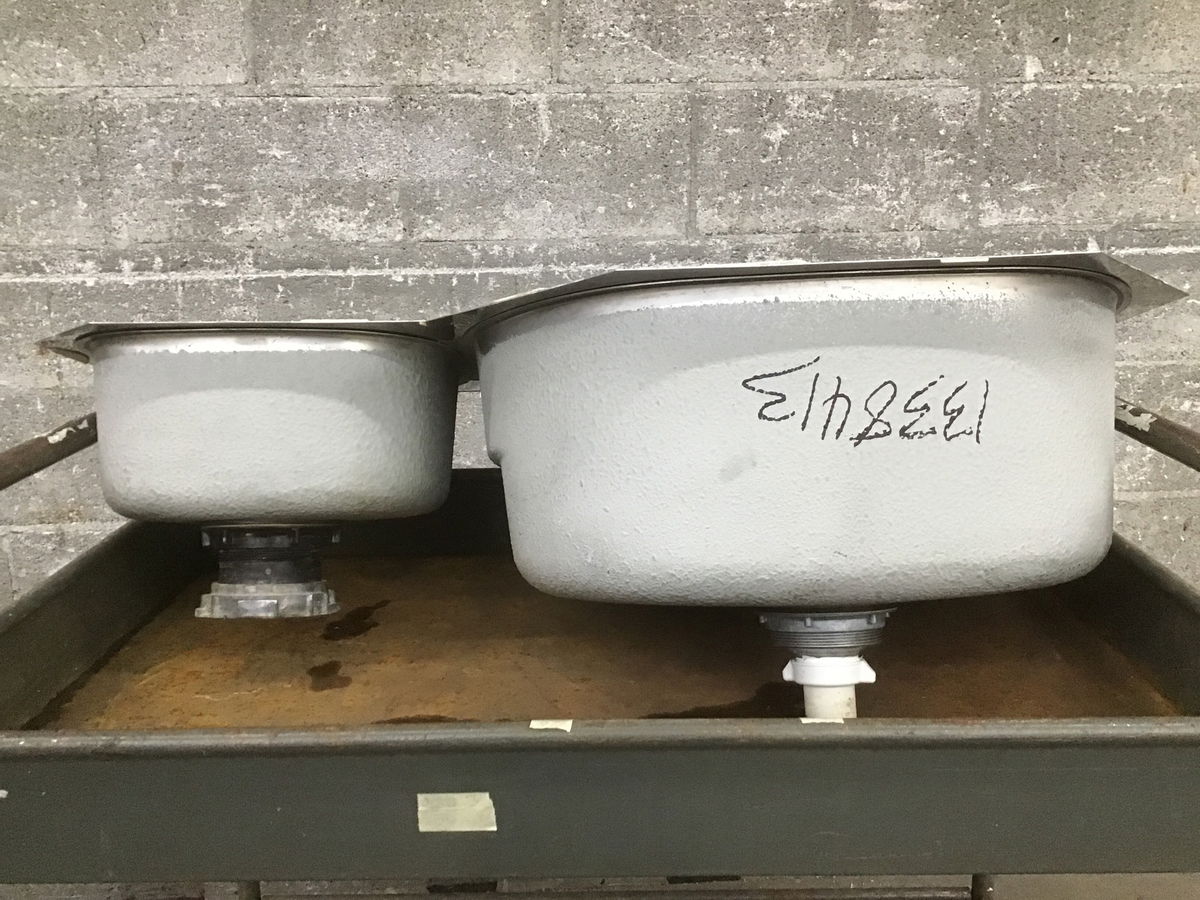 Used with some surface wear, but still usable, Franke stainless steel undermount kitchen sink. Small bowl is ~6" deep and 15 3/4" front to back.