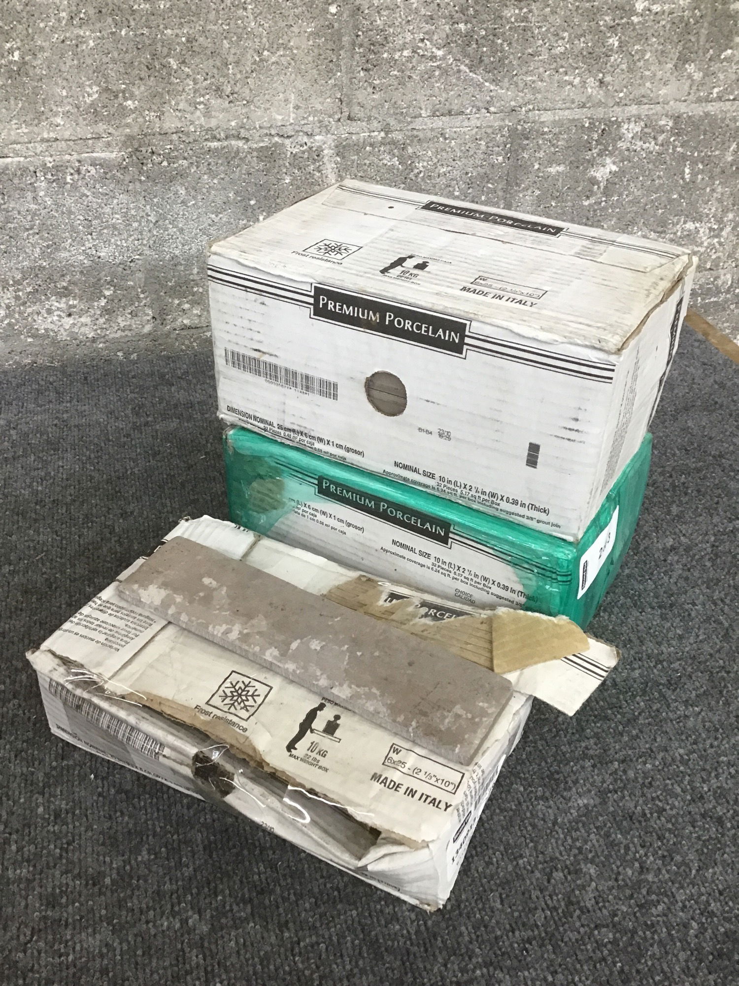 ~15SF of Taupe Brick Tile made in Italy. The tiles are a rough brick style, for that rustic vibe.