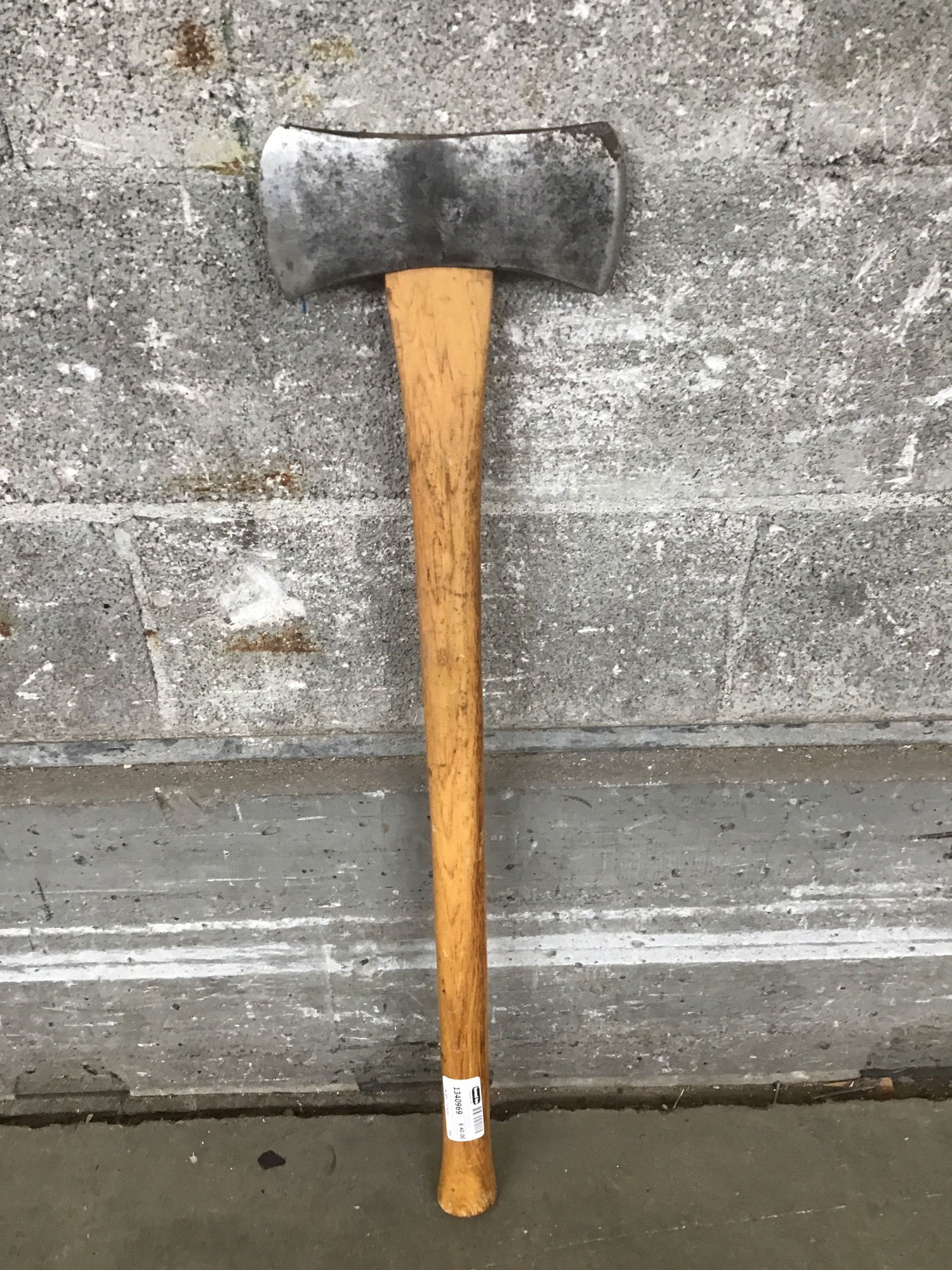 Smallish Plumb double bit axe that's pretty clean and has a readable logo. Handle looks solid.