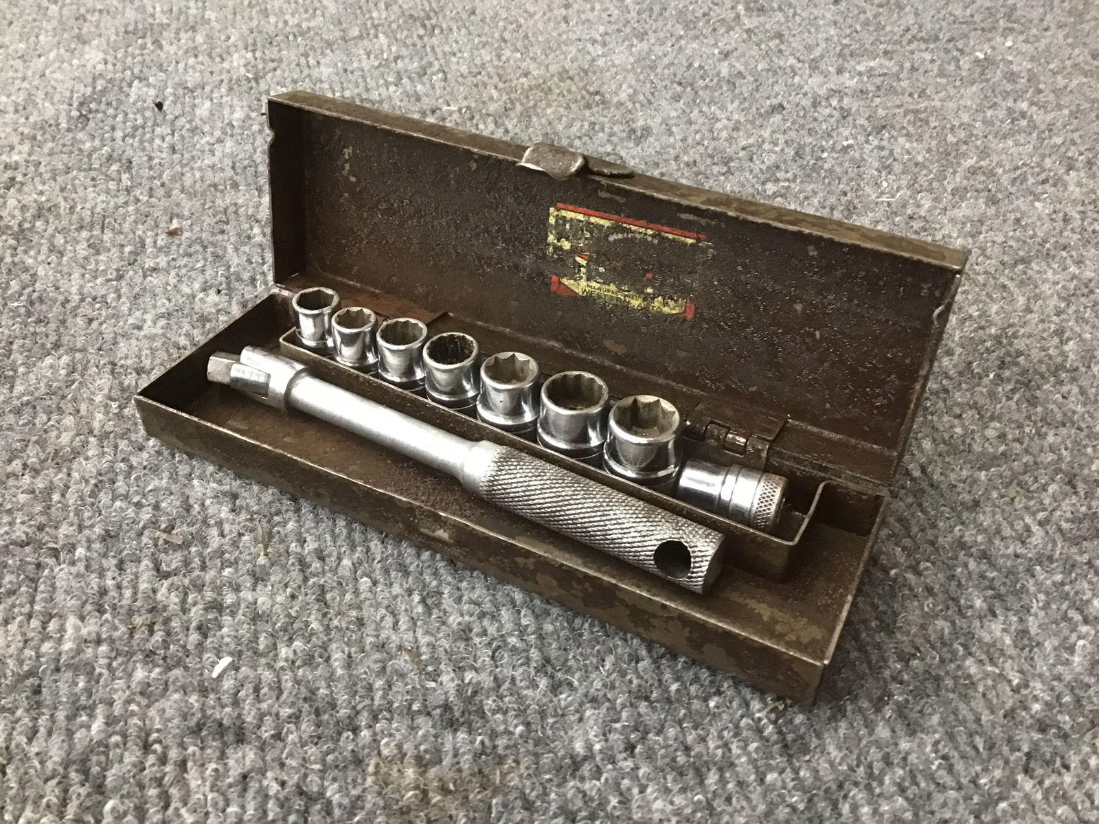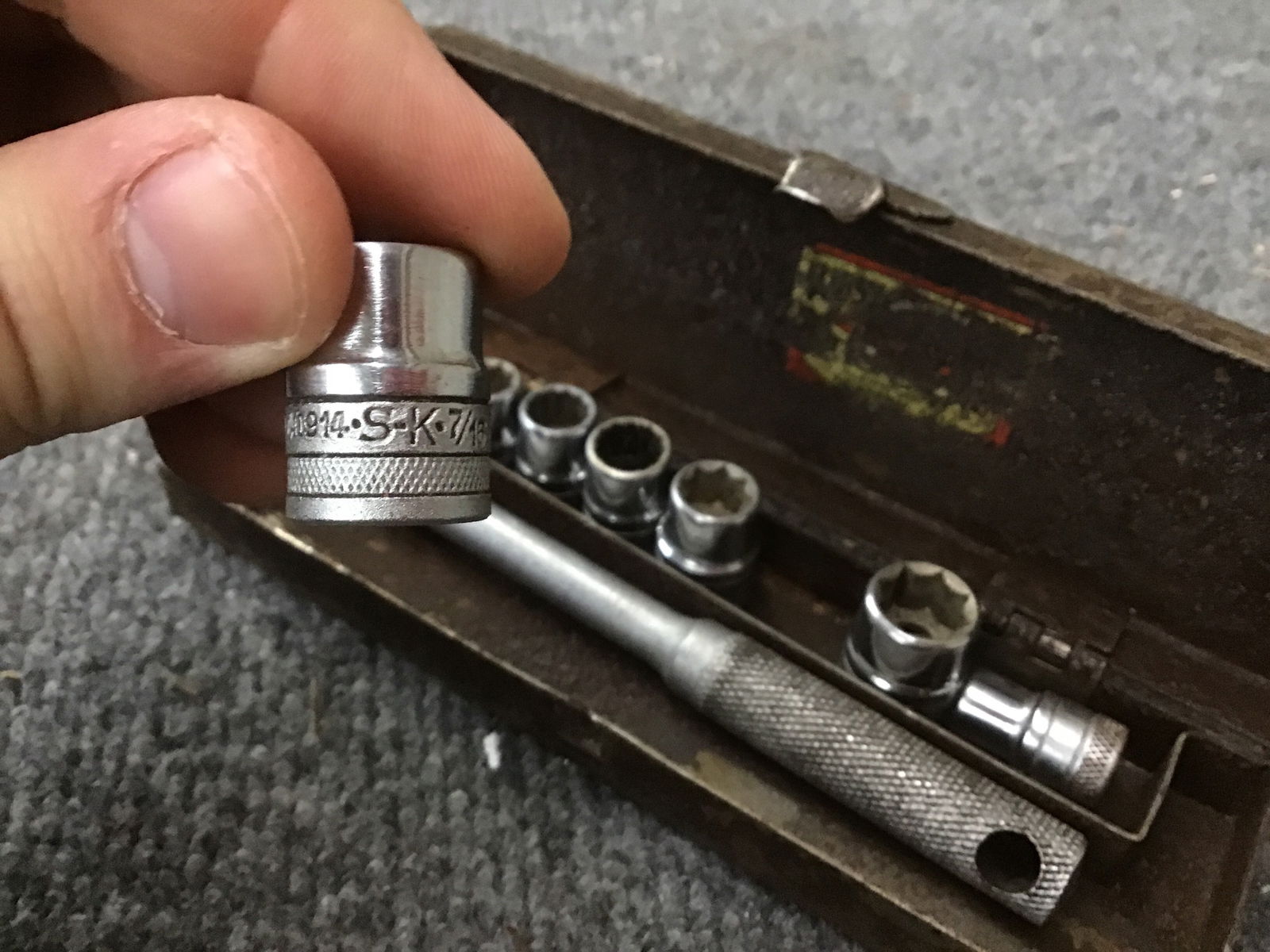 Alrighty you tool crazy dads, this here is a vintage S-K pocket socket wrench set. Its been used by only the daddliest of dads and the grease and grizzle is proof of that! Get ready to one up all the other neighborhood dads with this lil baby!