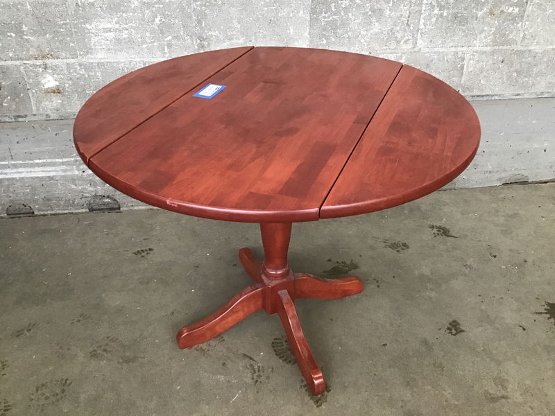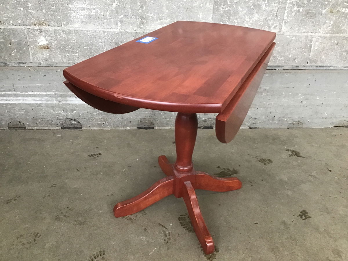 This is a smaller sized dining table, perfect for small living spaces, that has two drop leaves that widen to table to 36". Has a medium cherry stain.