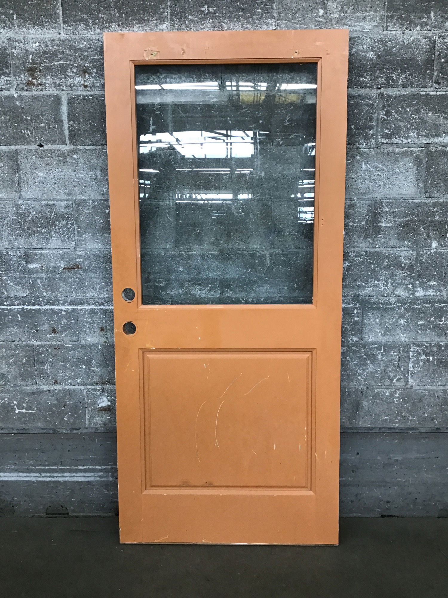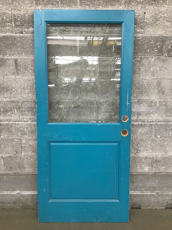 36" Exterior Half Lite Door painted blue on one side and orange on the other. Classic color combo!