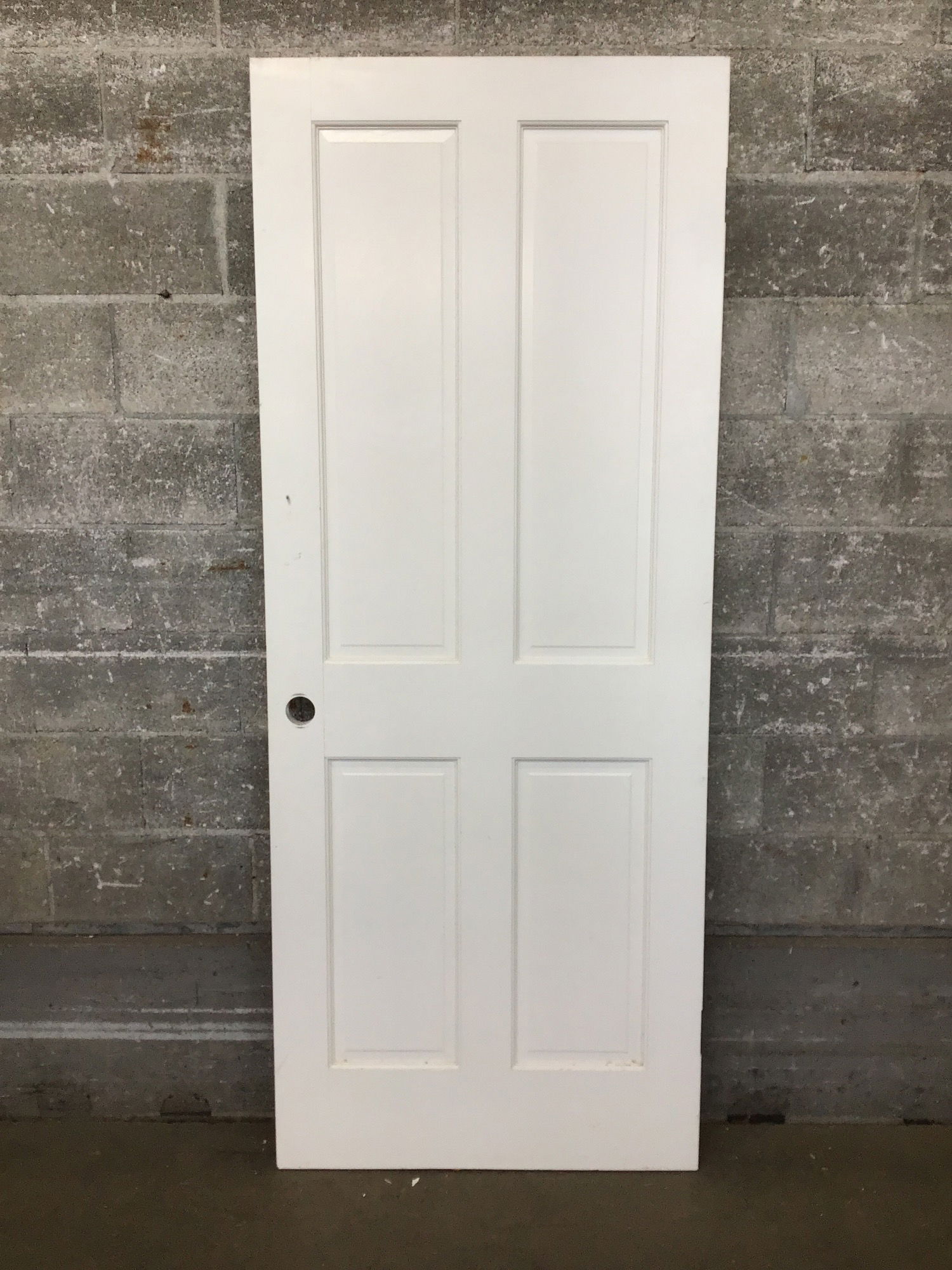 A nice looking interior door with a painted white finish. This door features four raised panels and would be excellent for a bedroom door in an older abode.
