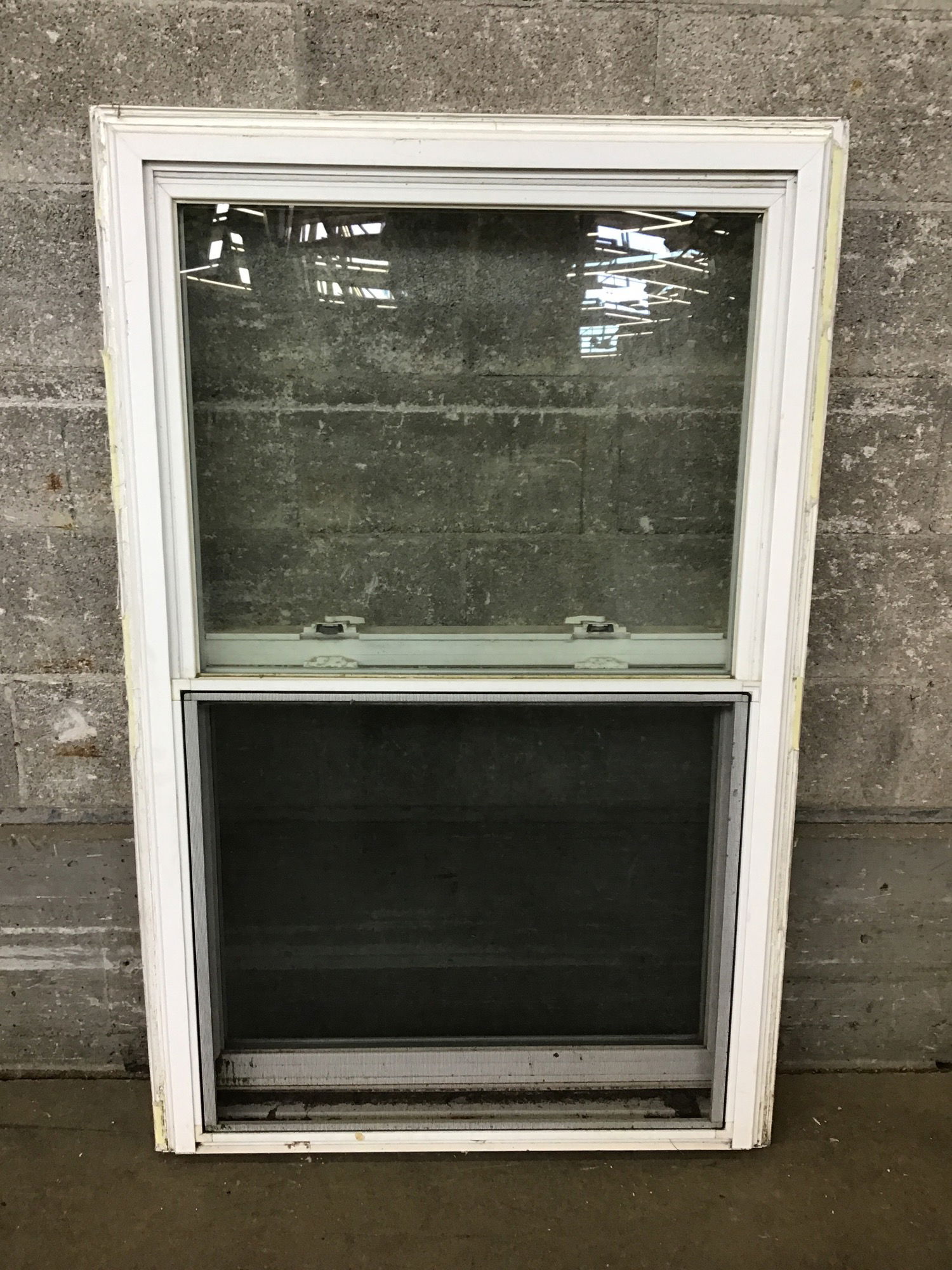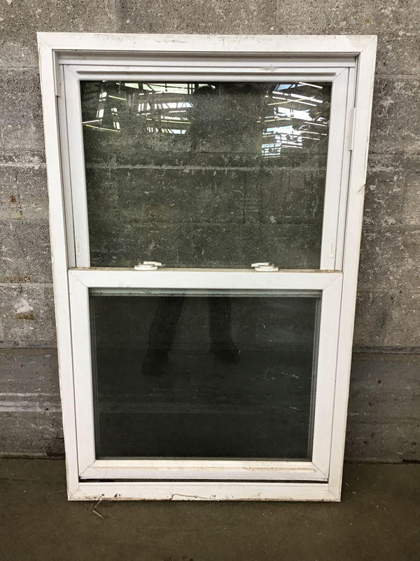 This white vinyl double hung window includes a screen, thermopane glass and looks to be in good shape. Unsure of age or brand, its a little dirty and will need a good wipe down; price reflects!