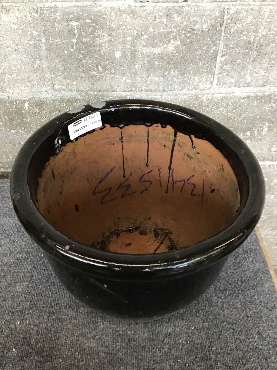 Black glazed planter
