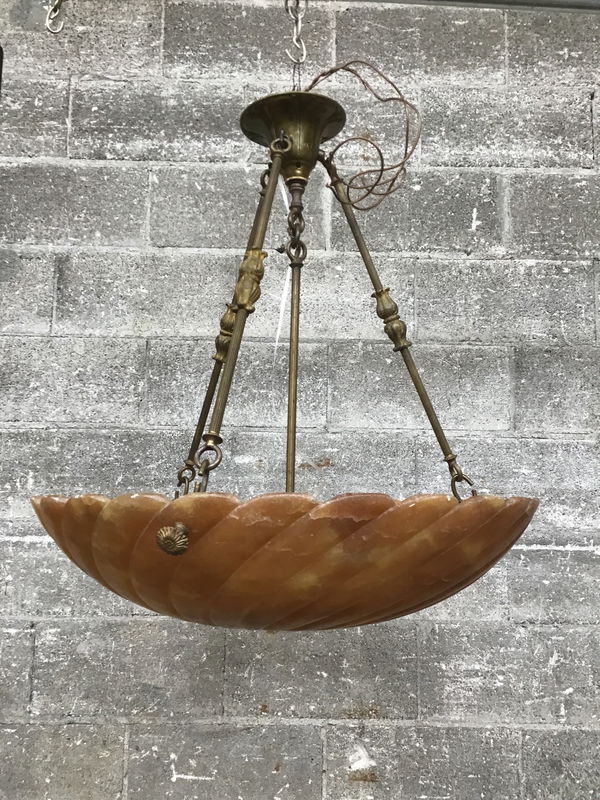 Vintage Alabaster Bowl Chandelier