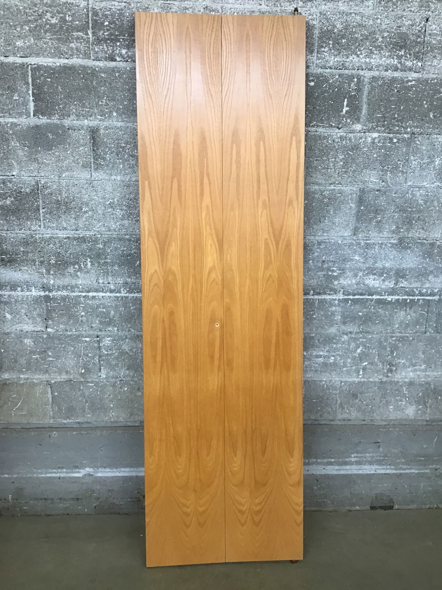 What looks to be a vintage oak hollow core bi-fold door. This would make for a good closet, pantry or laundry room door.