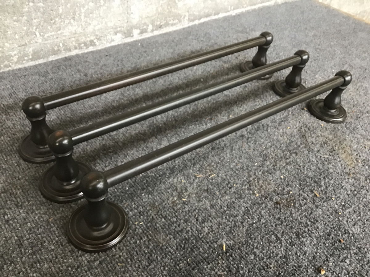 Three 18" Towel Bars with an oil-rubbed bronze finish.