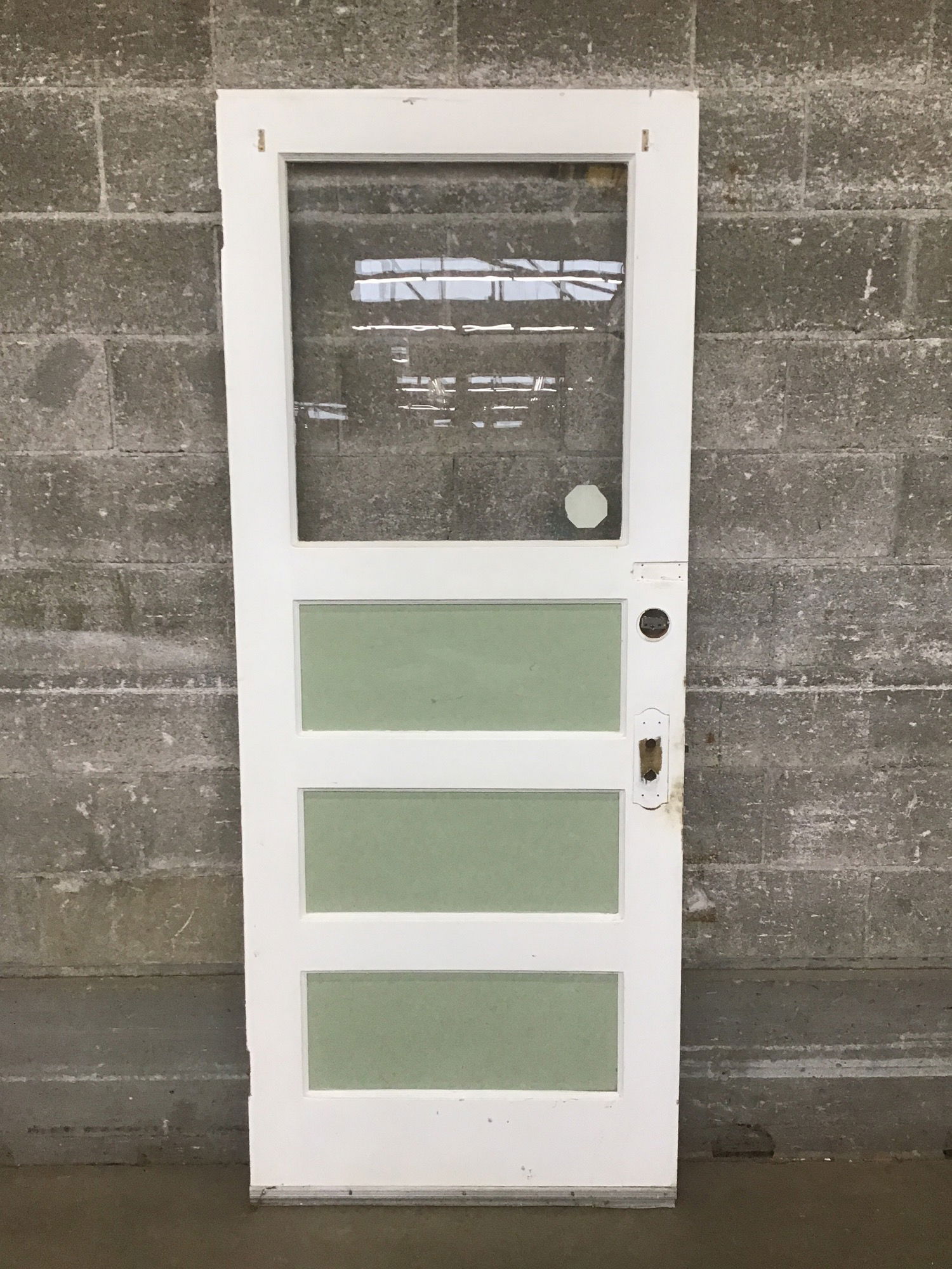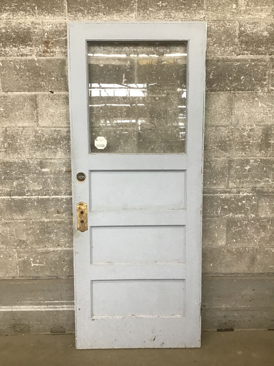 Interior thickness, single pane fir half lite that probably used to be a back porch door. Hinge cuts go all the way across edge of door, so I'd guess it's been used as a left hand pull and right hand pull door at different points in its life.