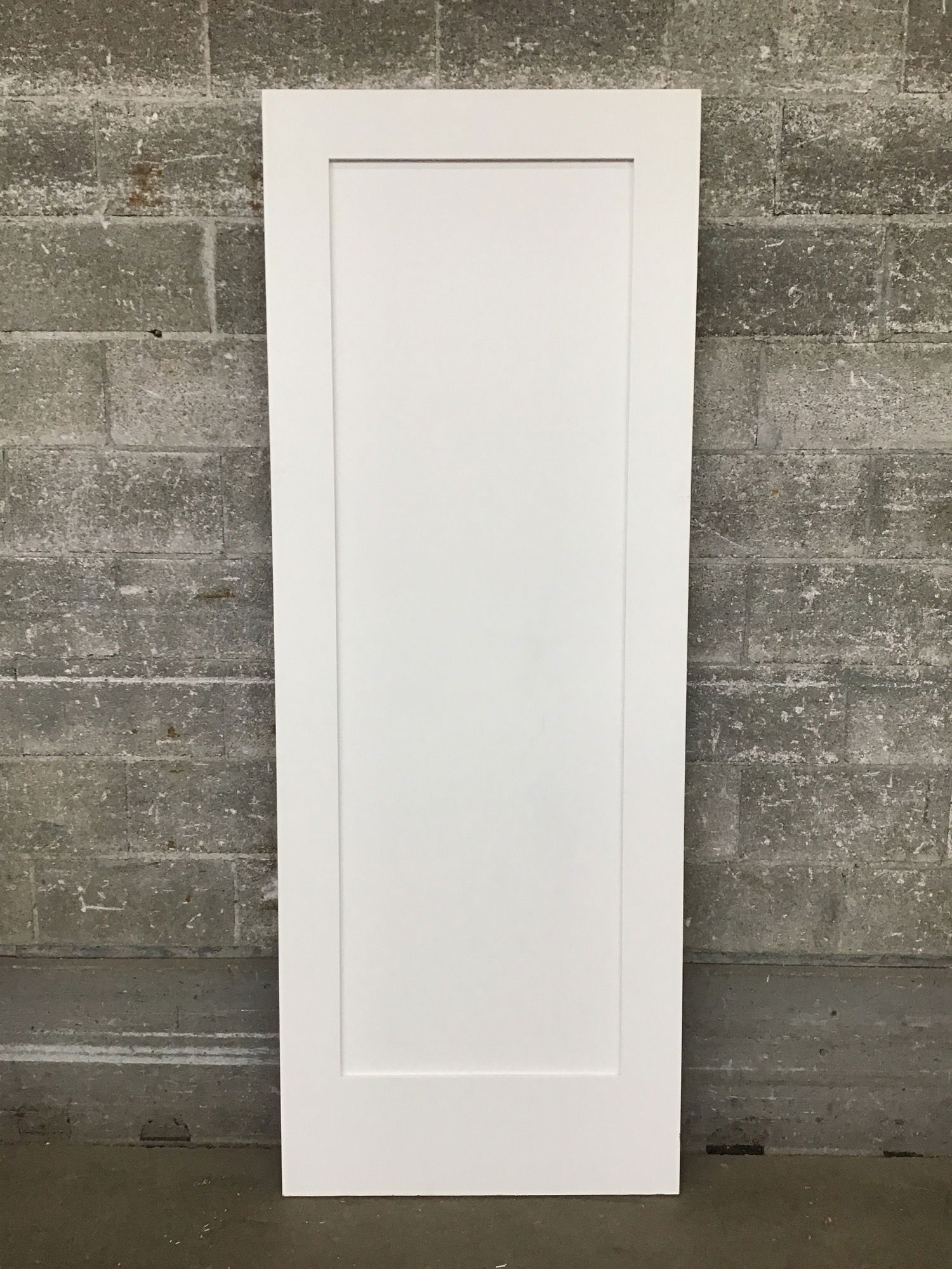 New shaker style single panel door with no cuts and partially drilled, lotsa flexibility for hanging.