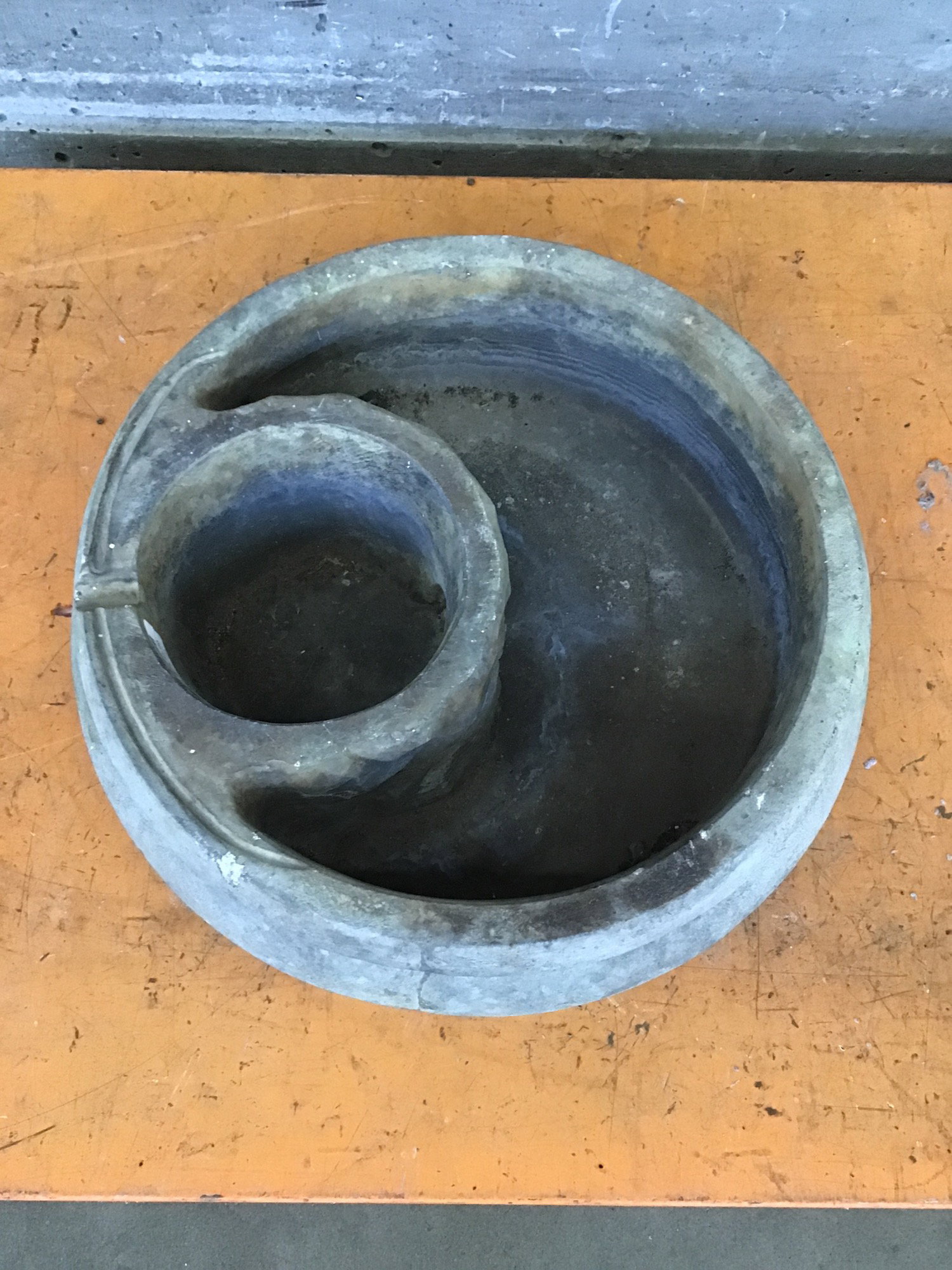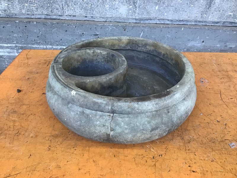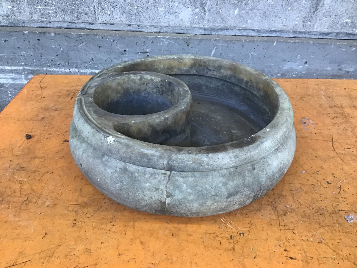 Round fountain basin in great shape, no chips or cracks to write home about. Could be used as intended or repurposed as a birdbath or other garden accoutrement. Just in time for gardening season!